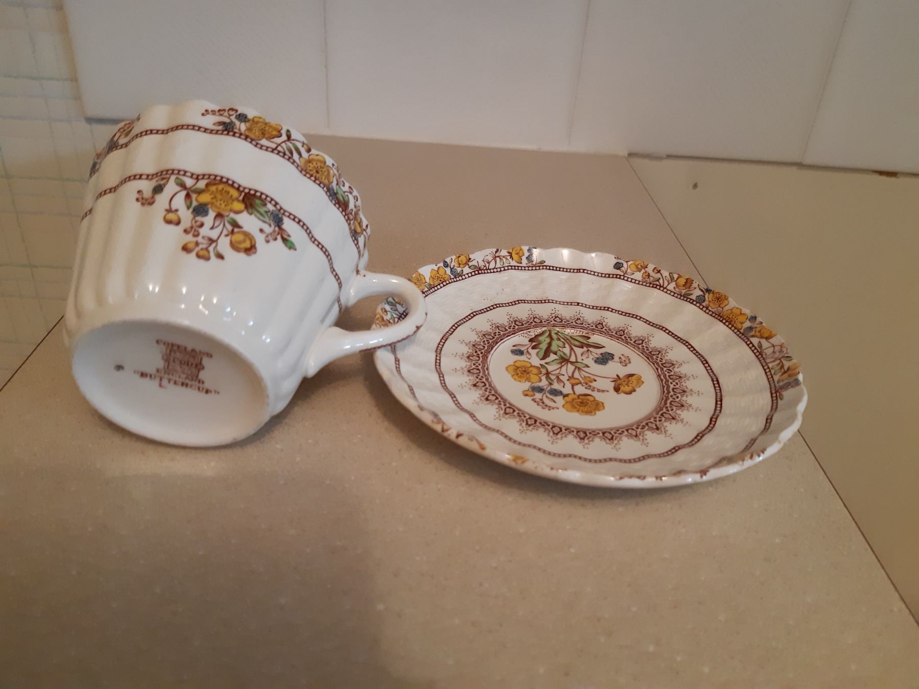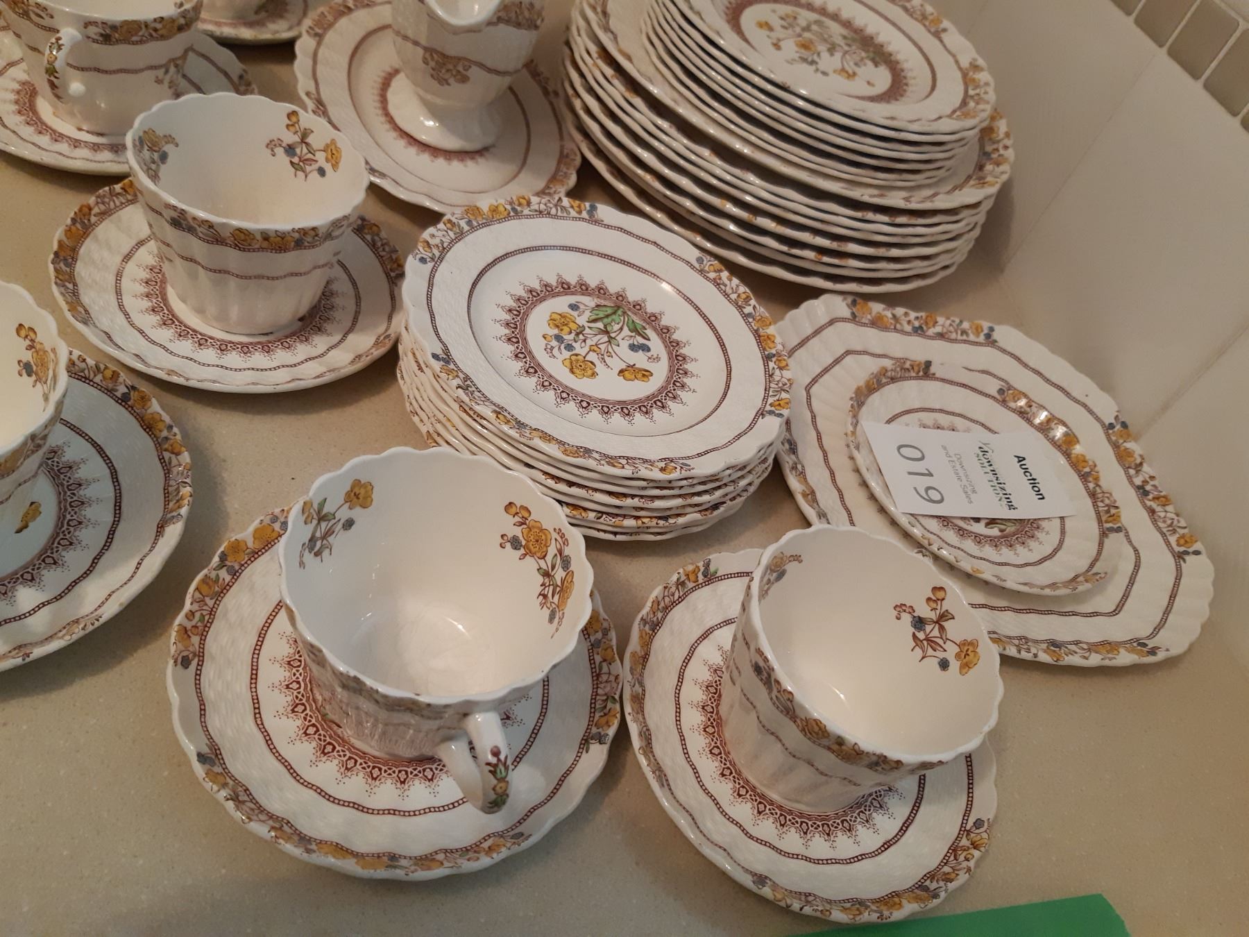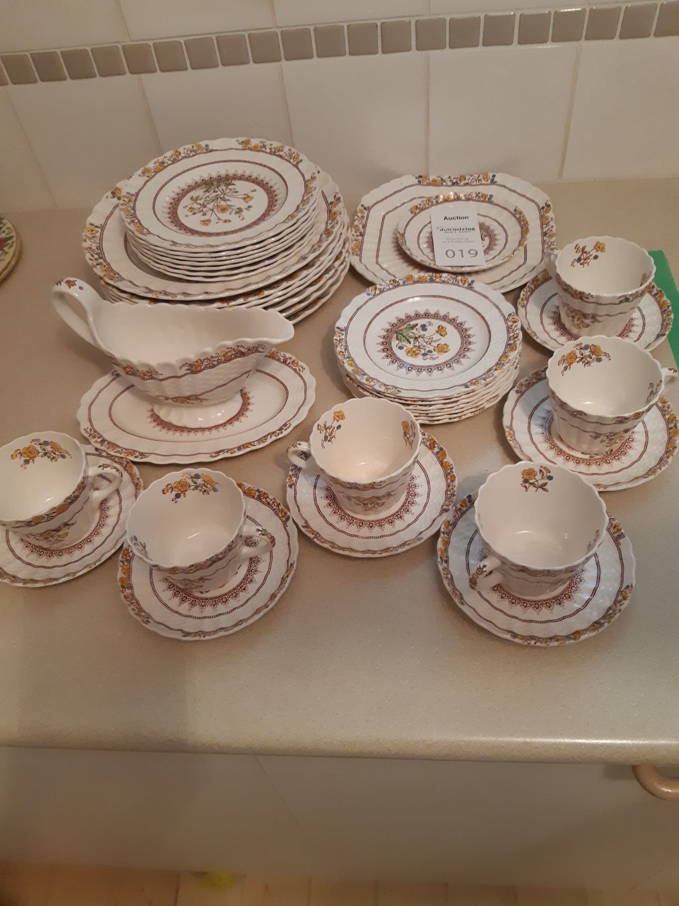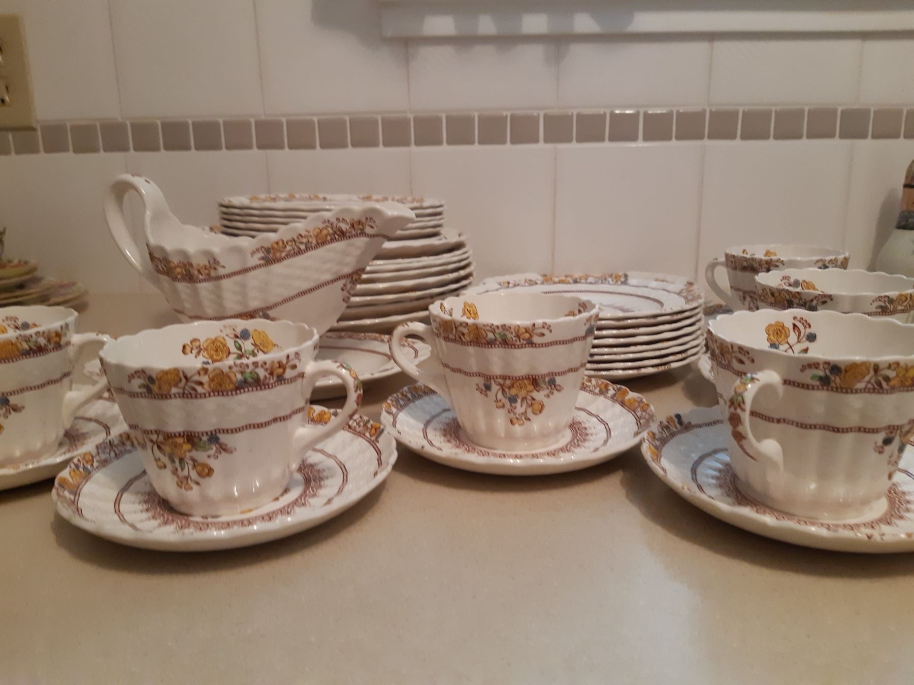 Six place set in Buttercup design with extras. Some crazing and light scratches. Bring packing materials.
