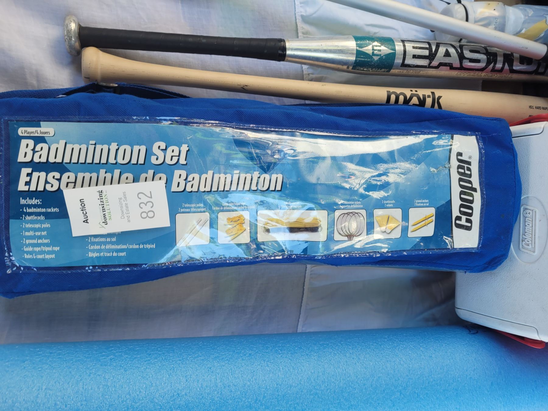Adult bike helmets, baseball bat, balls, Badminton set, Coleman cooler and more. Pickup at 9 am
