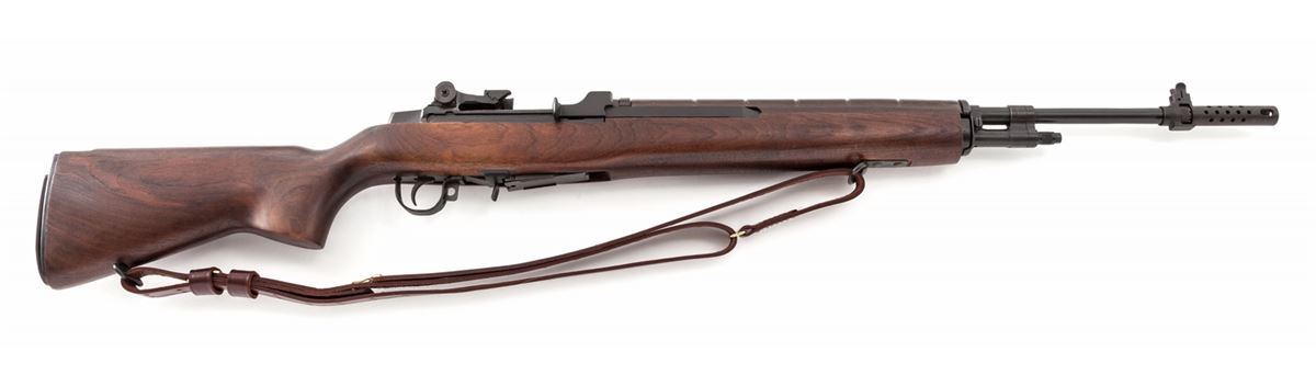 Springfield M1A National Super Match Semi-Automatic Rifle, #050008, .308 cal., 22'' Douglas carbon barrel with muzzlebrake, parkerized finish, heavy glass-bedded walnut stock, National Match hooded rear sight, .072 front blade, Match tuned two-stage trigger tuned to 4.5 to 5 lb. pull with 1-10'' rifling twist, TRW bolt, GI small parts, with one-five round magazine and leather sling. Rifle weighs in at 11.2 lbs. Condition is excellent showing little overall use. MSRP: $2,871. Est.: $2,000-$2,500. (Modern)