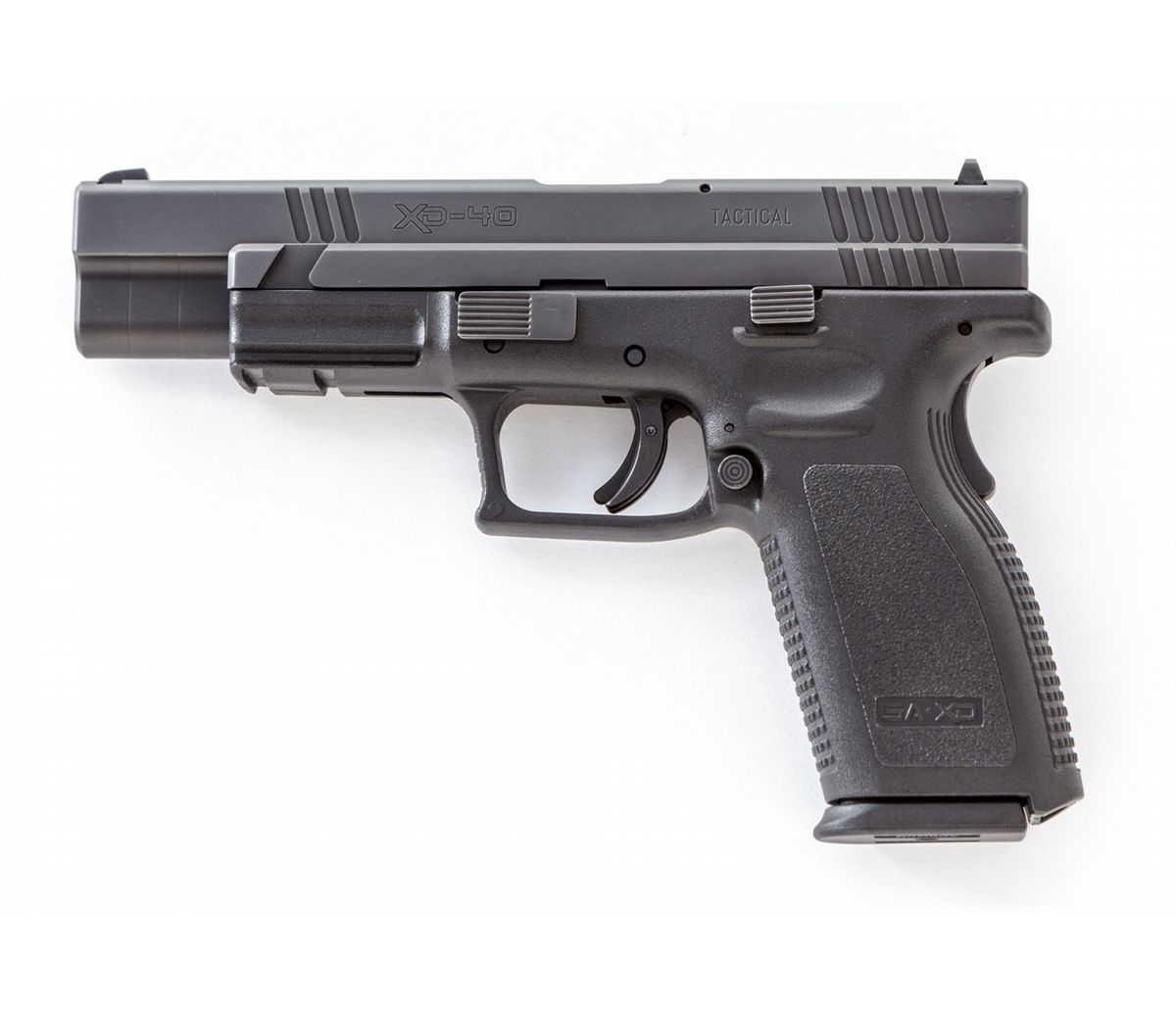 Springfield Armory Model XD-40 Tactical Semi-Automatic Pistol, #US169344, .40 S&W cal., 5'' barrel, matte finish, with two 10-round magazines, in original hard case with molded mag pouches and holster. Condition is excellent, appearing new and unfired. Est.: $500-$750. (Modern)