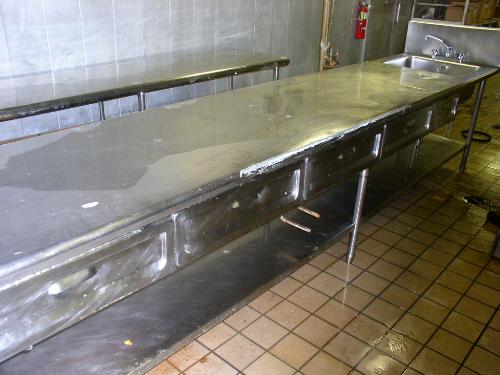 Stainless Steel Table with Sink 44"H x 148"W x 30"D with 5 Drawers Work Surface Height is 34"