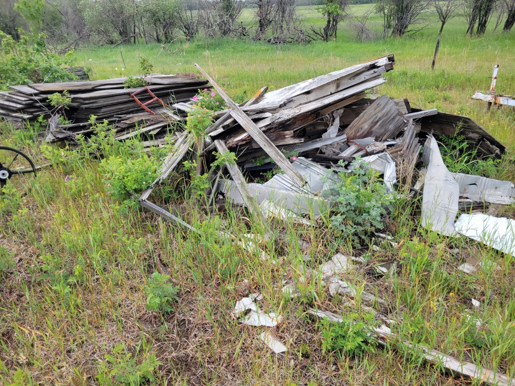 Stainless steel double sink, hot seat boiler, bricks, cable, trailer, wood building and misc. Buyer to load out.