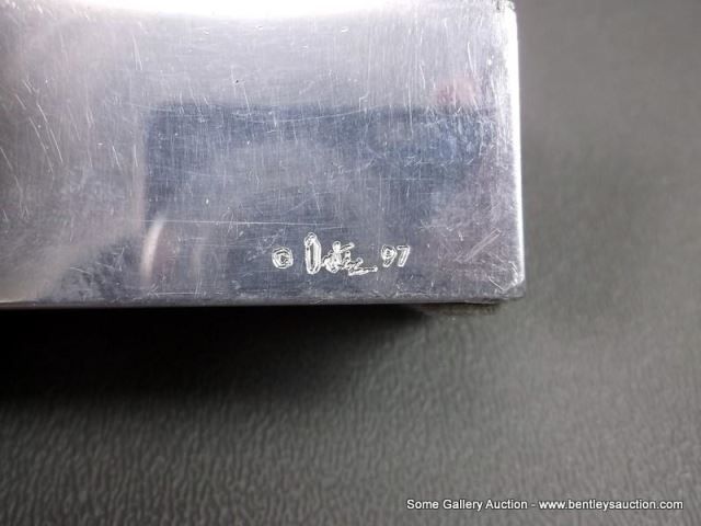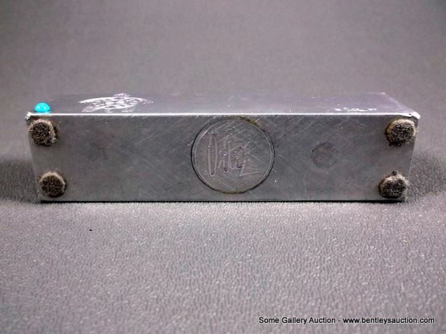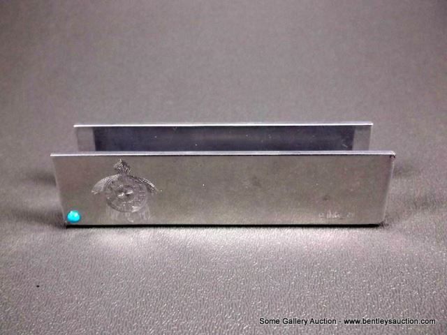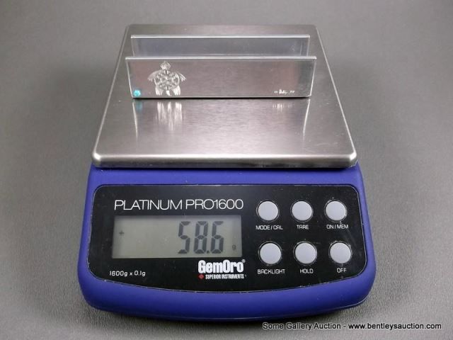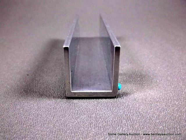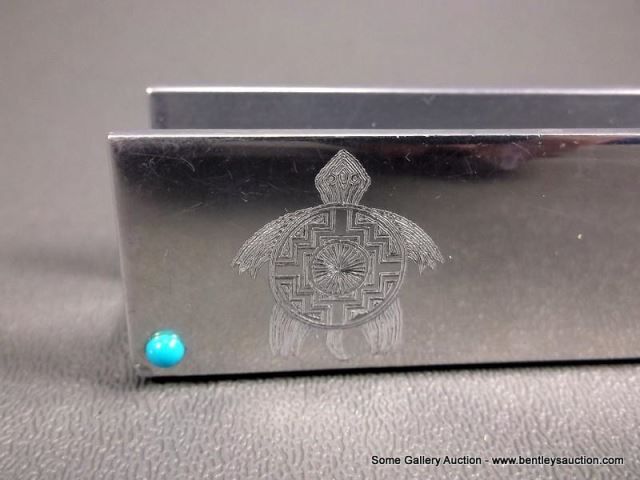 Stamped Southwest Aluminum Business Card Holder w/ Turquoise-Marked Ortiz 1997 Weight: 58.6 Grams