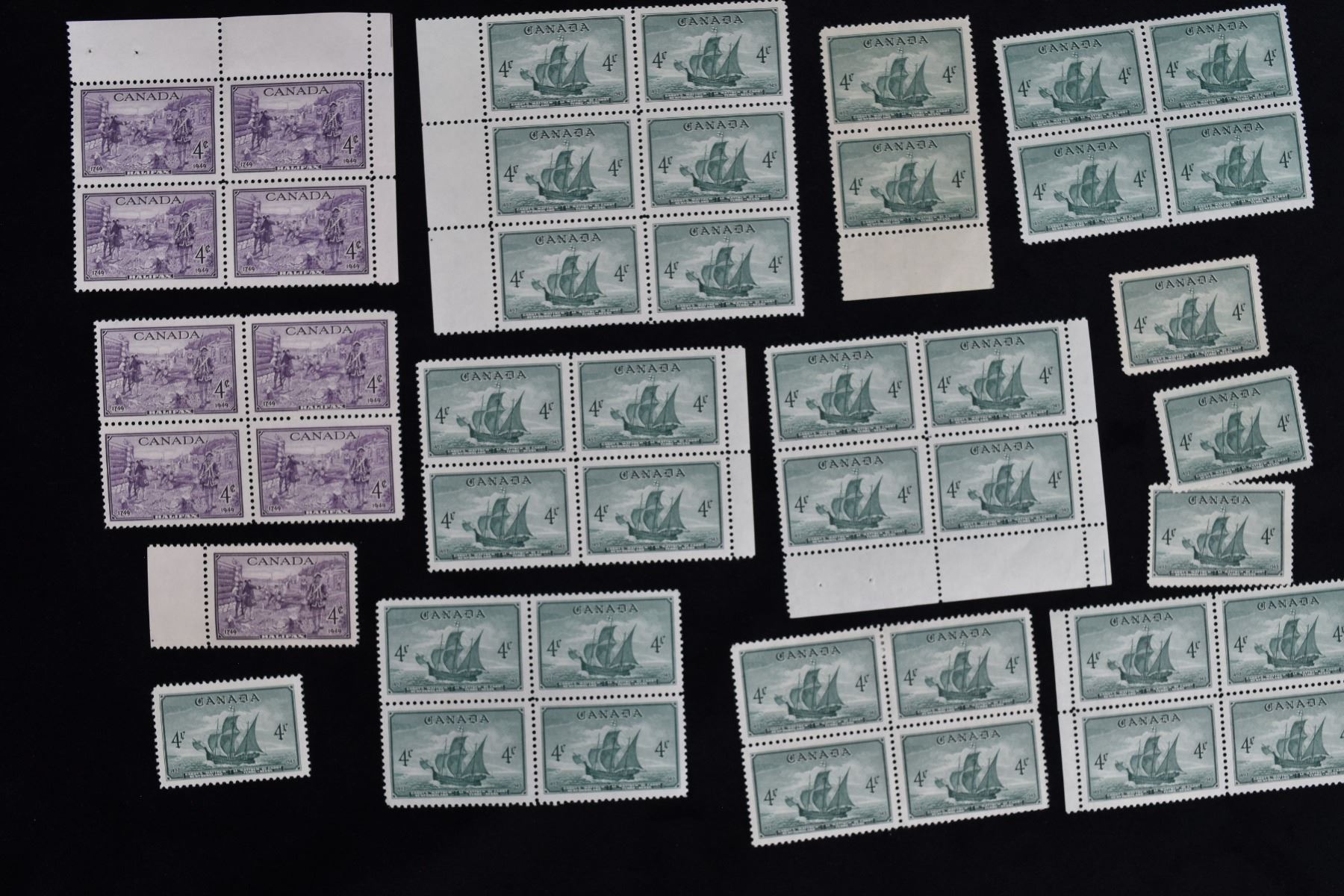 Lot of 45 Canada Stamps; 9 x 4c 1949 Halifax Bicentenary, 36 x 4c 1949 Newfoundland Bicentenary; Mint Never Hinged