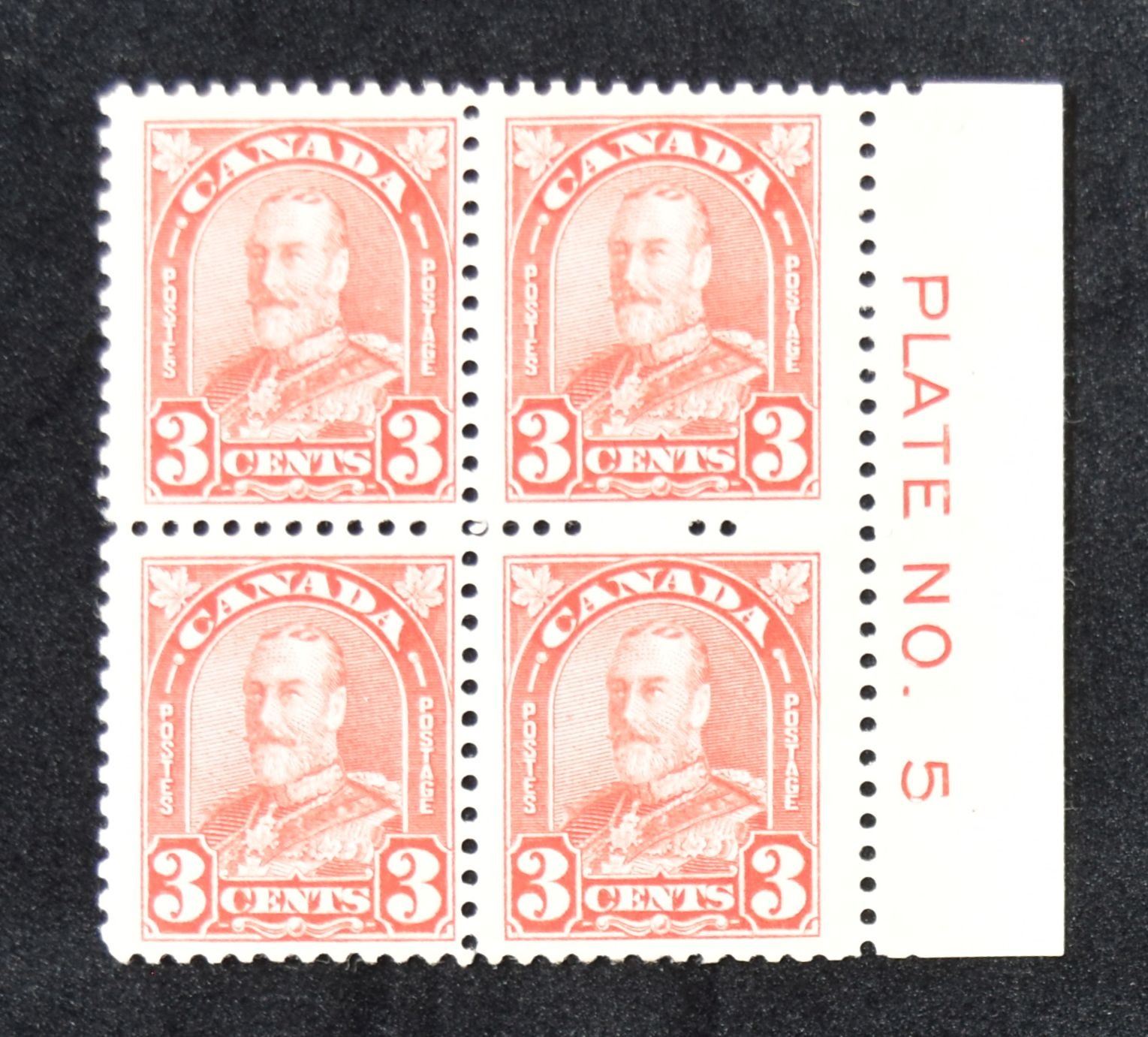 Lot of 4 Canada 3c Stamps, King George V; Mint Never Hinged