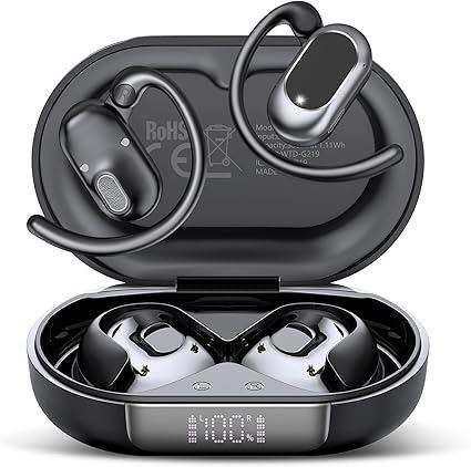 - stecei open ear headphones, bluetooth 5.4 earphones 36h playtime air conduction headphones with mic, light black
