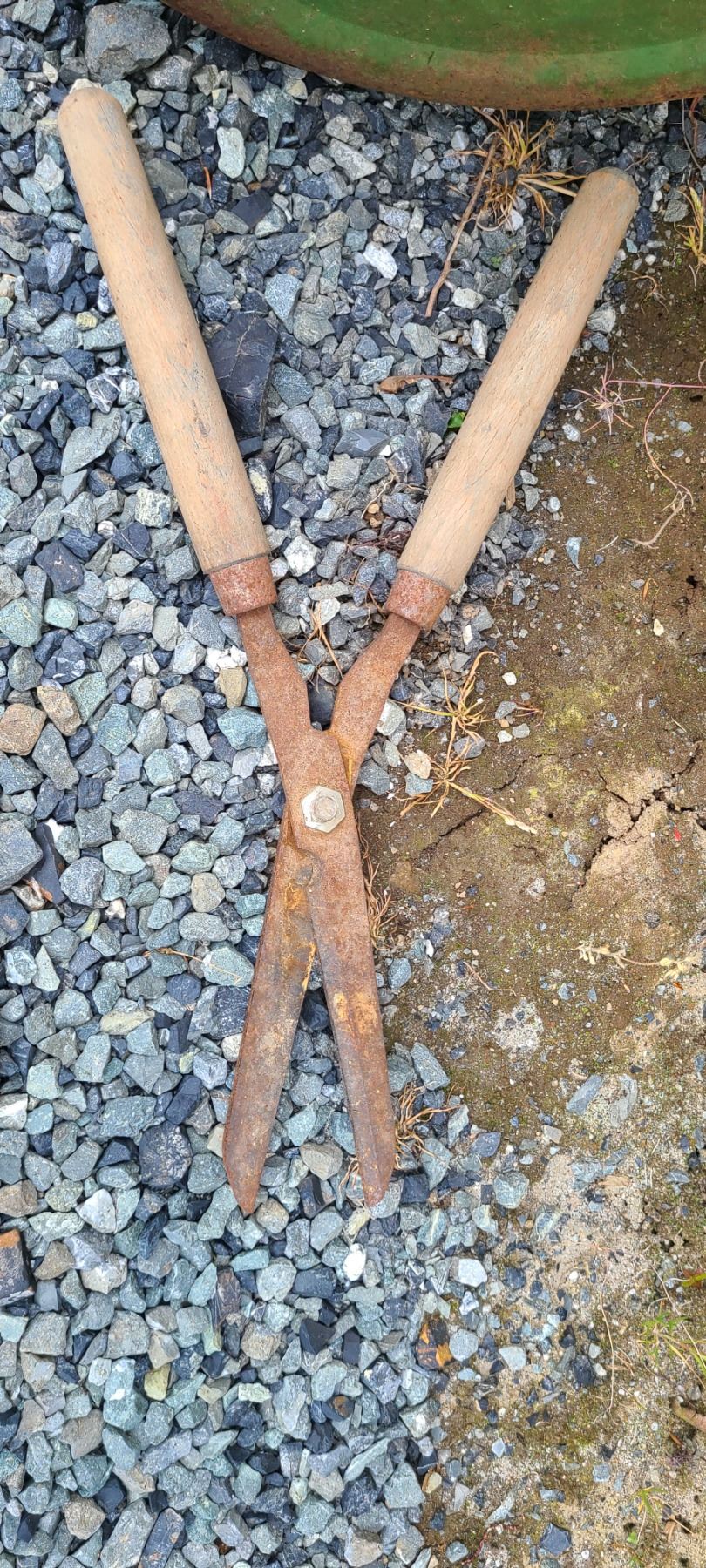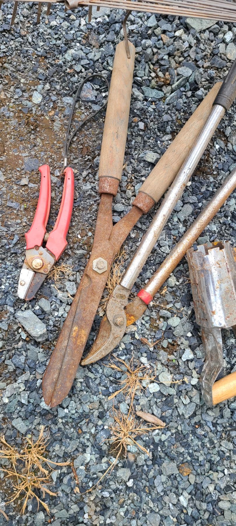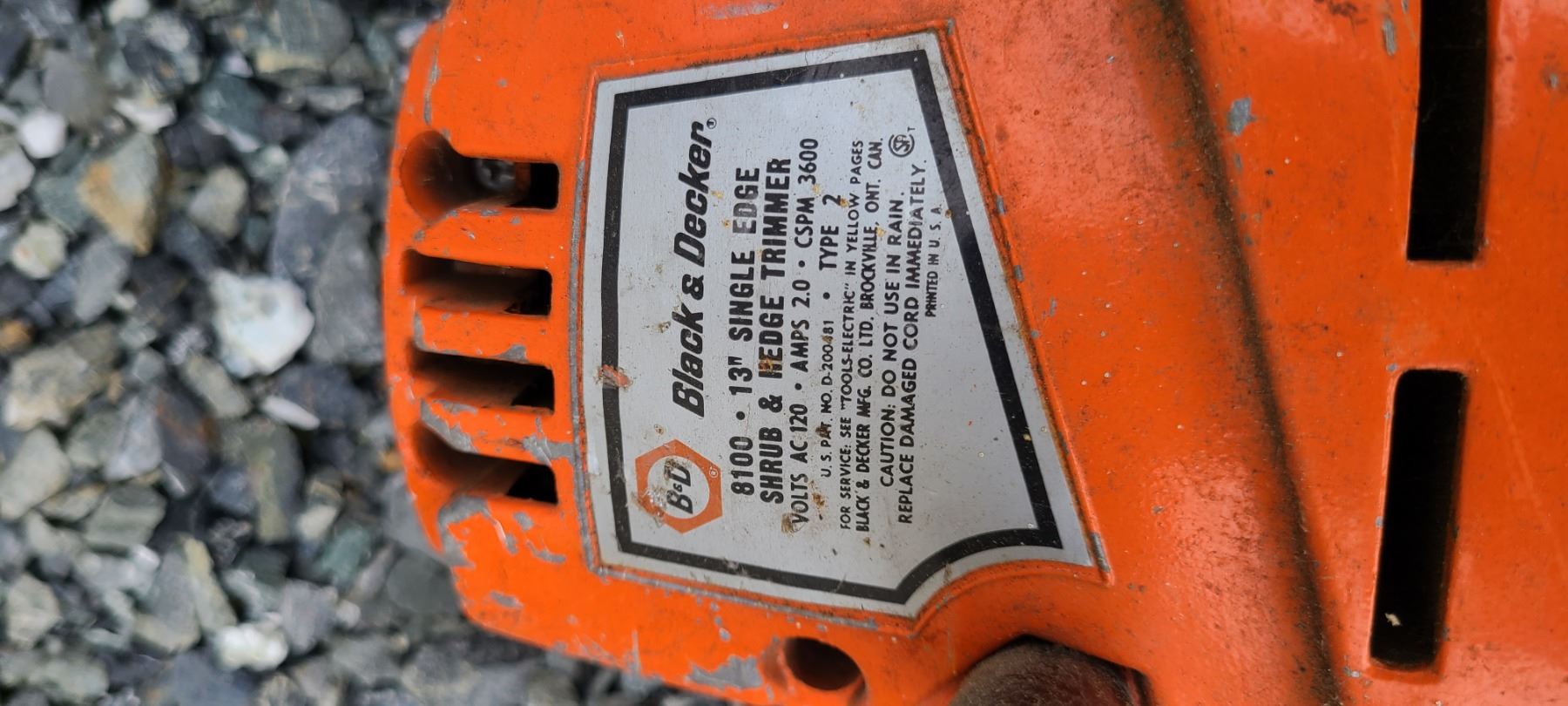 Steel roller needs plug, branch lopper and B&D hedger, untested and various garden tools. Pickup at 11 am