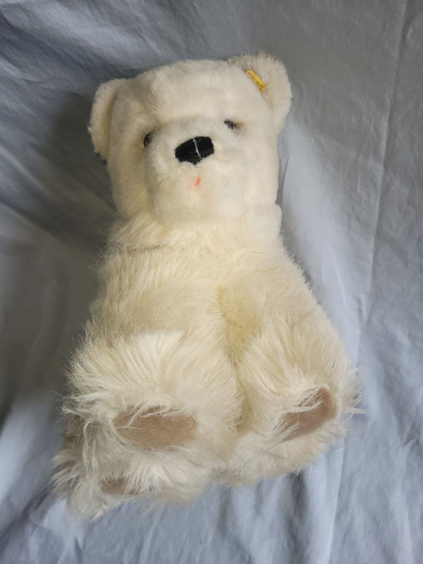 White Polar Bear with tag & ear button. 81/2" Pickup at 9 am