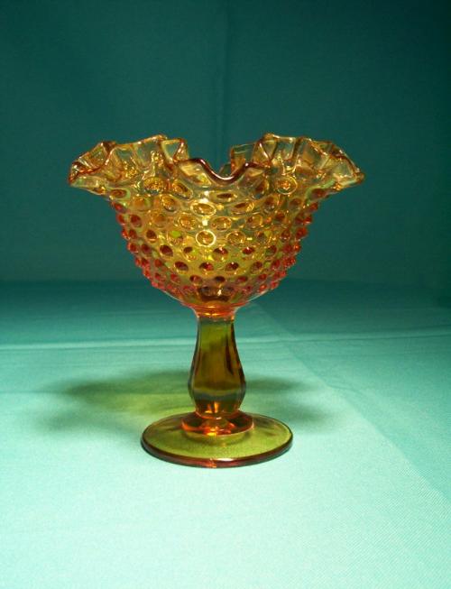 6" Fenton, Amber Petticoat Rim, Stemmed Vase