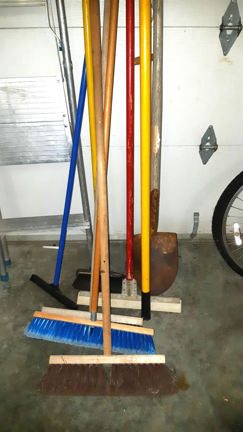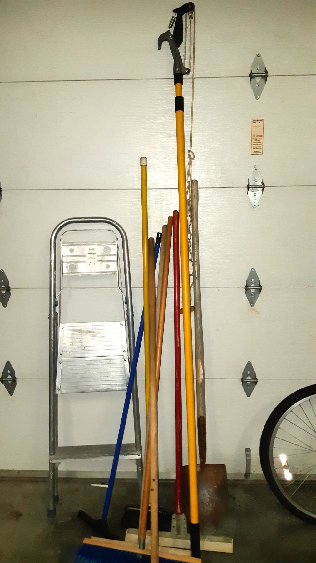 8' lopper, step ladder, spade and brooms. Pickup at 9 am