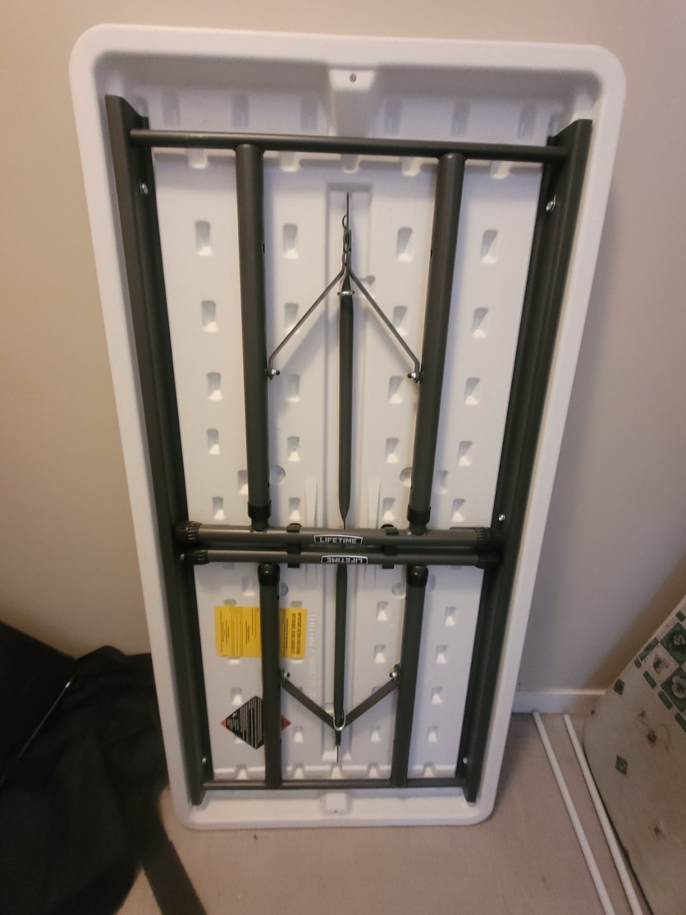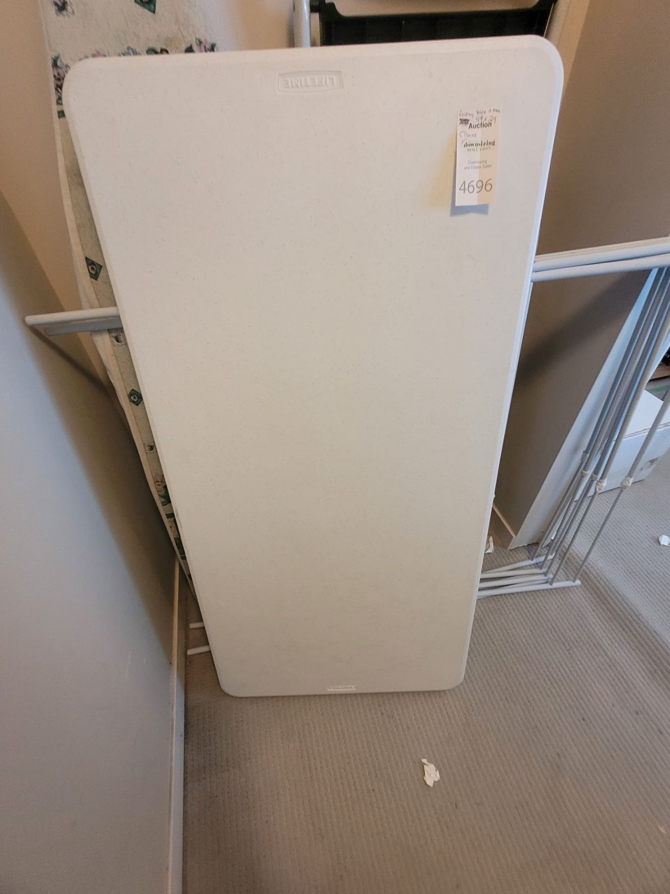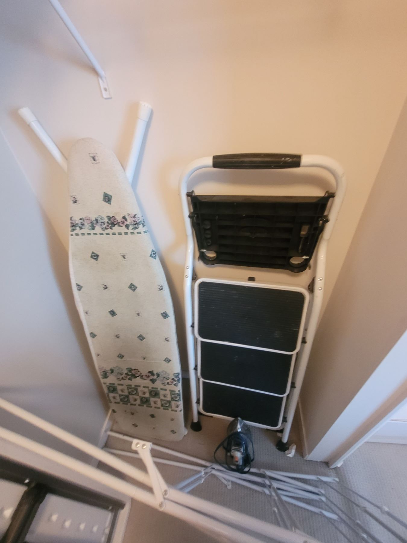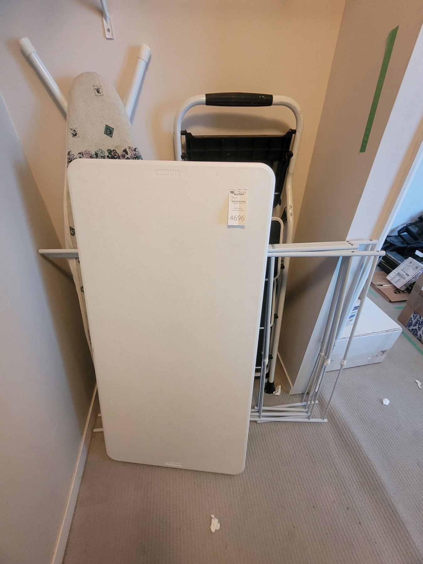 Ironing board and iron, drying rack, folding table, step stool. Pick up 9-10