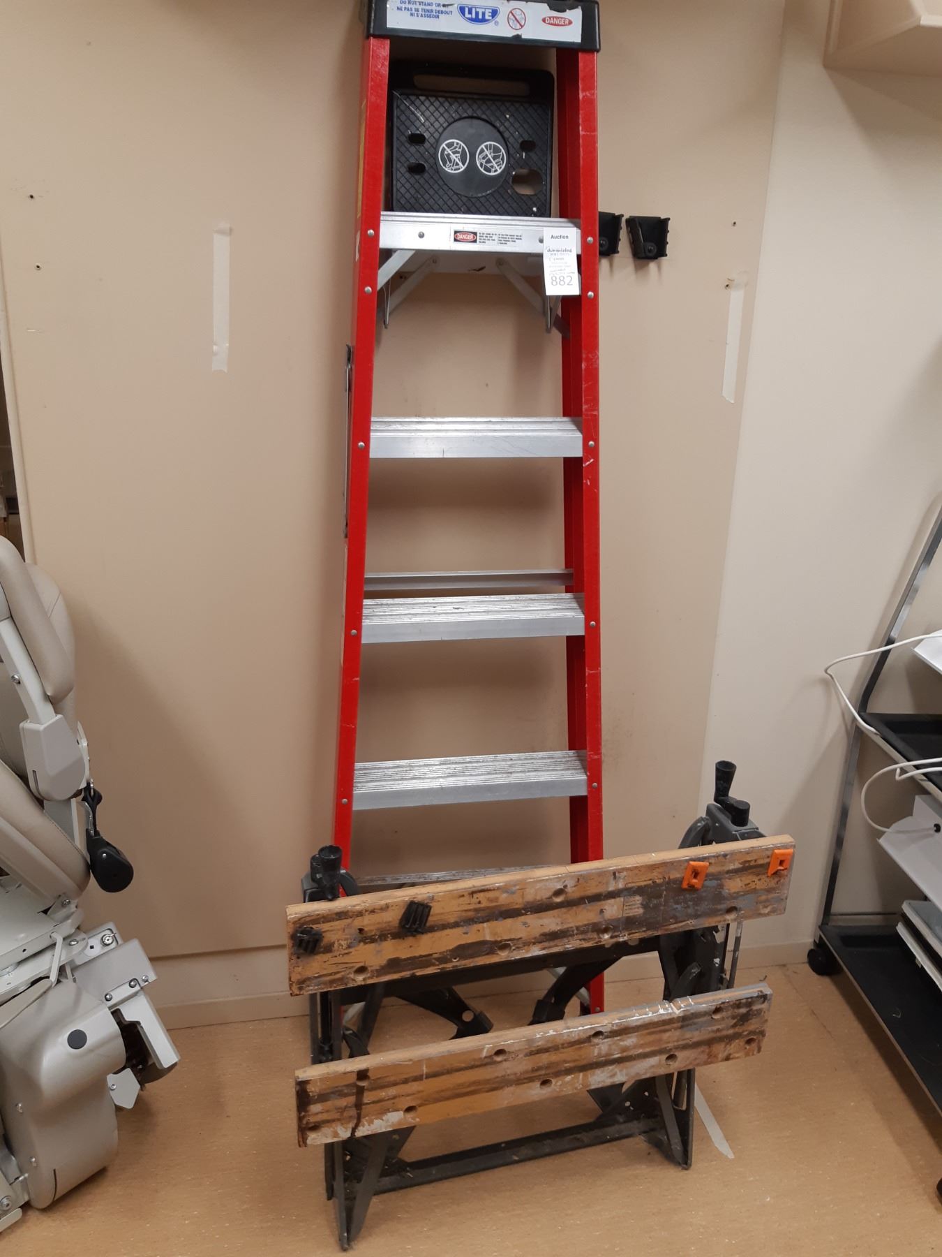 Fiberglass step Ladder 6' and workhorse. Pickup at 10 am