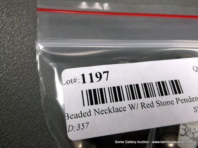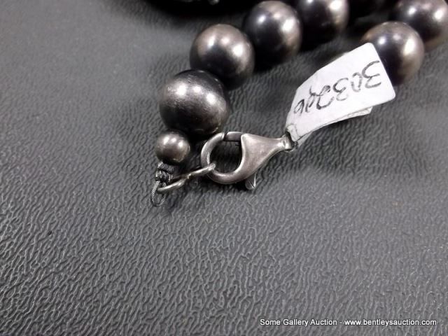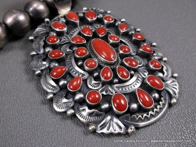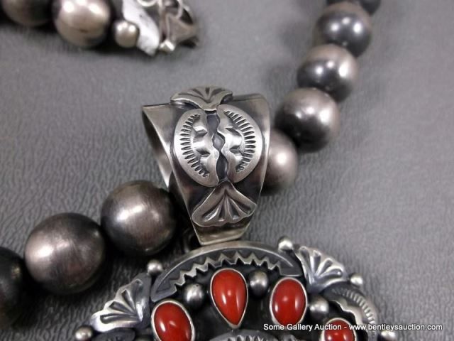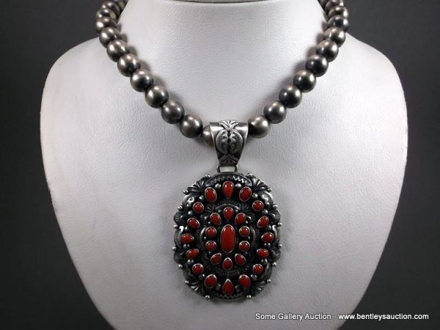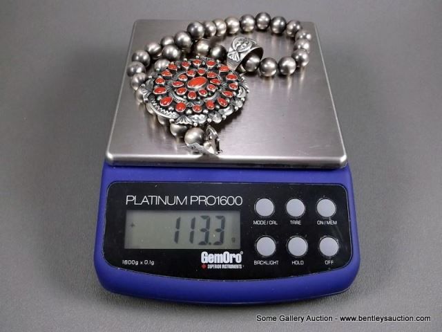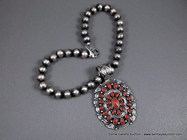 Sterling Silver Beaded Necklace W/ Coral Blossom Pendant-Marked D. Livingston Weight: 113.3 Grams Re