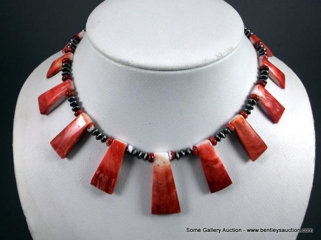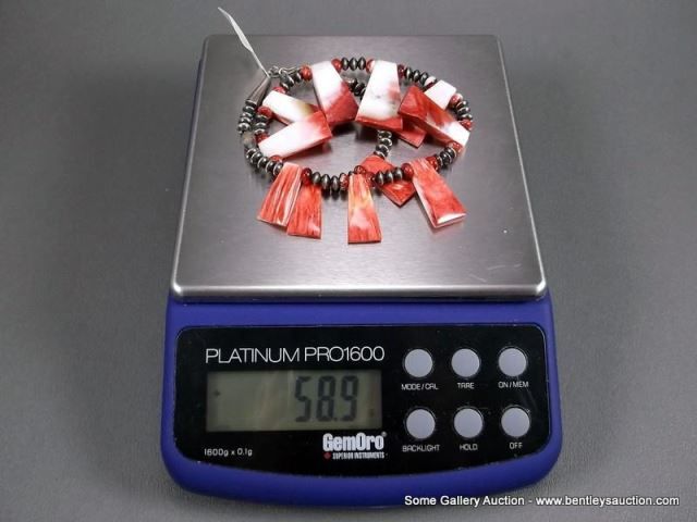 Sterling Silver Beaded Necklace w/ Red Stone Accents Weight: 58.9 Grams Retail: $495.00