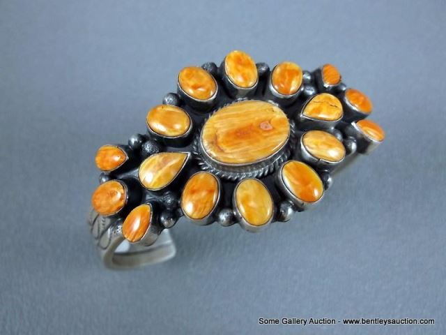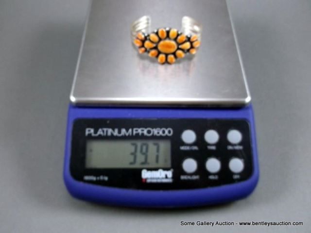 Sterling Silver Blossom Bracelet w/ Orange Stones- B. Johnson Weight: 39.7 Grams Retail: $495.00