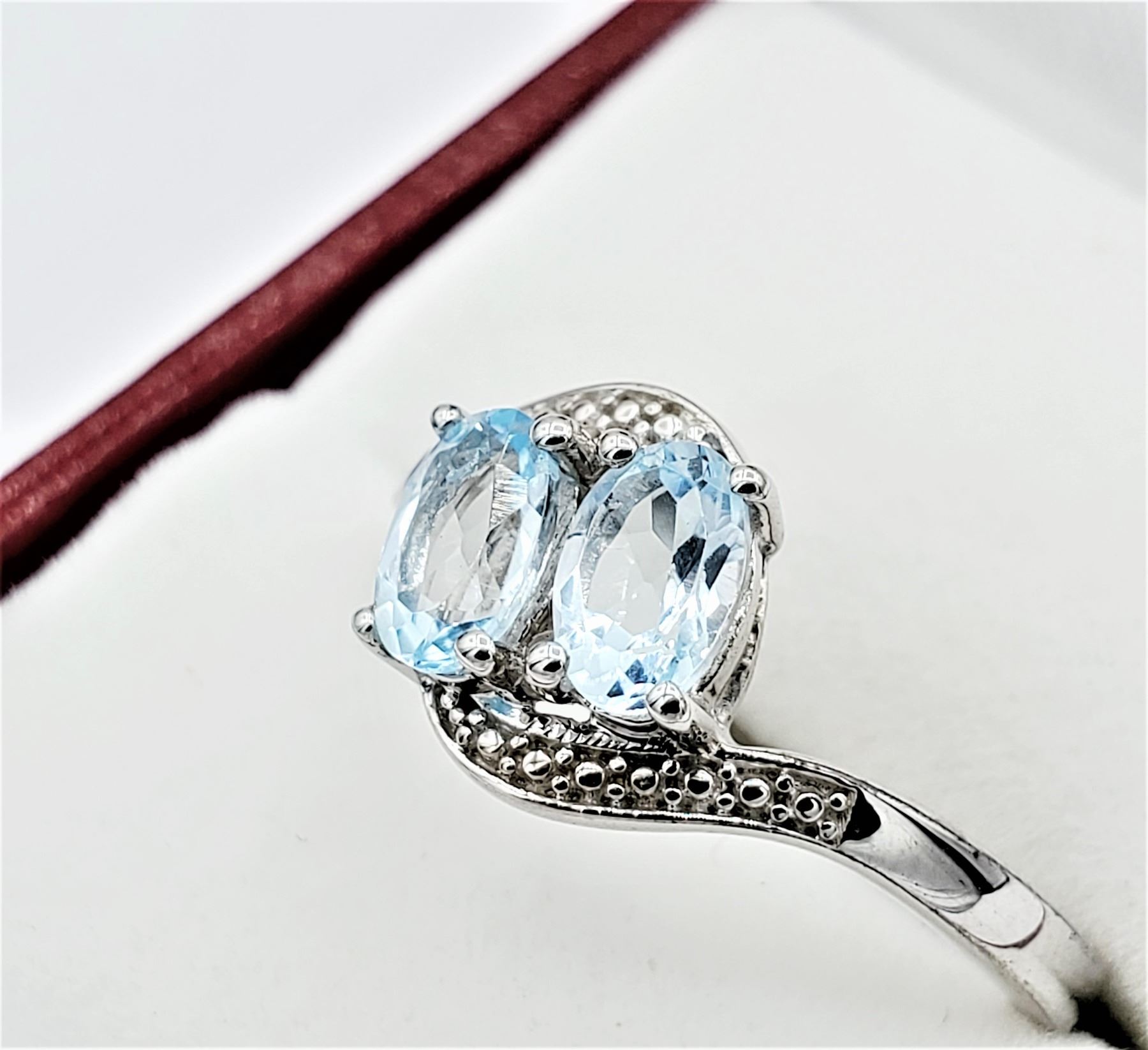 Sterling Silver 6mm x 4.18mm genuine Blue Topaz Ring, 1ct of Topaz, With Appraisal of $640.00, Size 6.75, Blue Topaz is a birthstone for December.