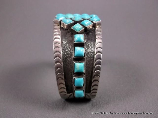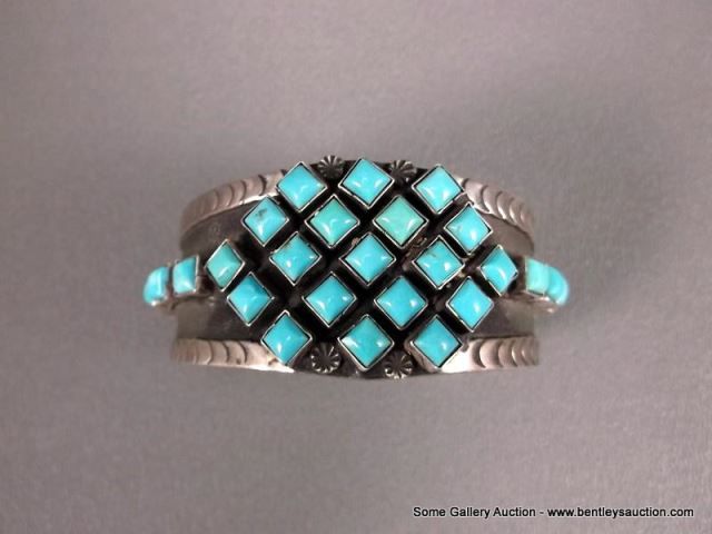 Sterling Silver Bracelet W/ Turquoise Stones- Marked NB Weight: 86.5 Grams Retail: $695.00