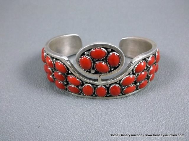 Sterling Silver Bracelet w/ Coral Stone-Marked Emer Thompson Weight: 65 Grams Retail: $1,250.00