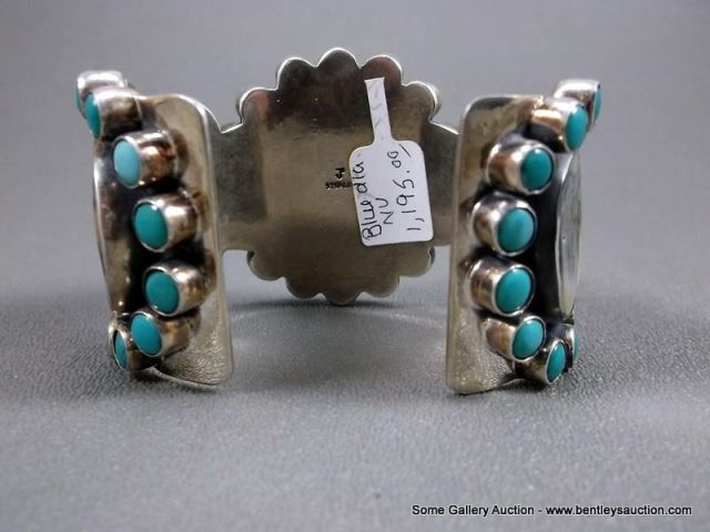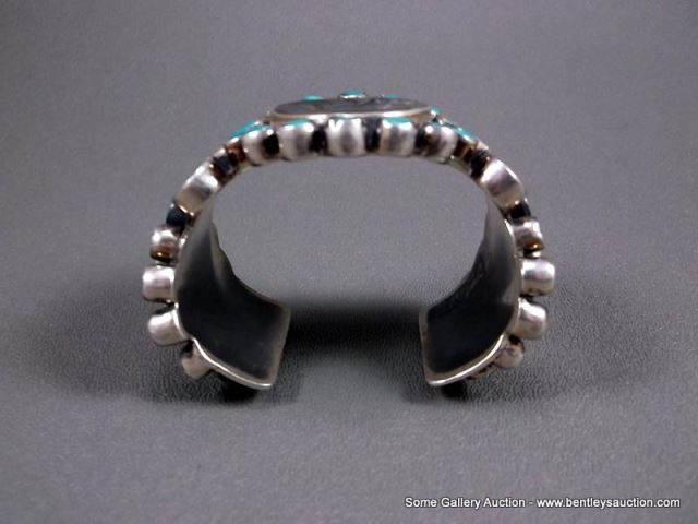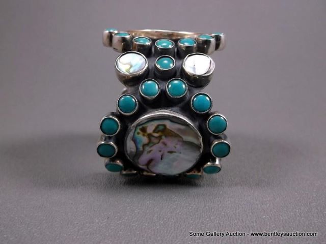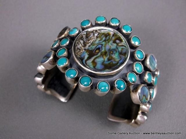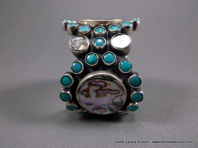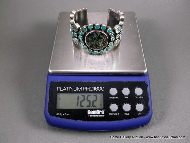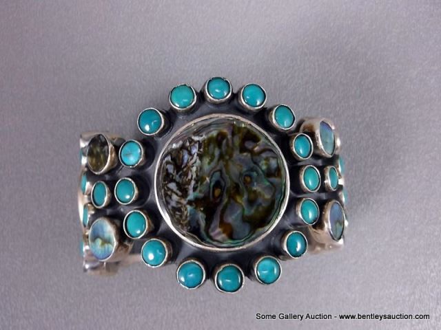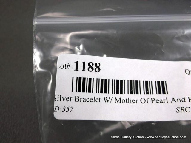 Sterling Silver Bracelet w/ Mother Of Pearl and Blue Stone Blue Dia Nv-Marked J Weight: 125.2 Grams
