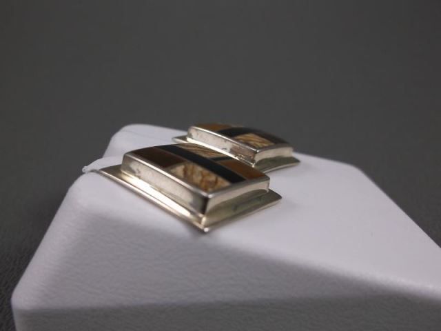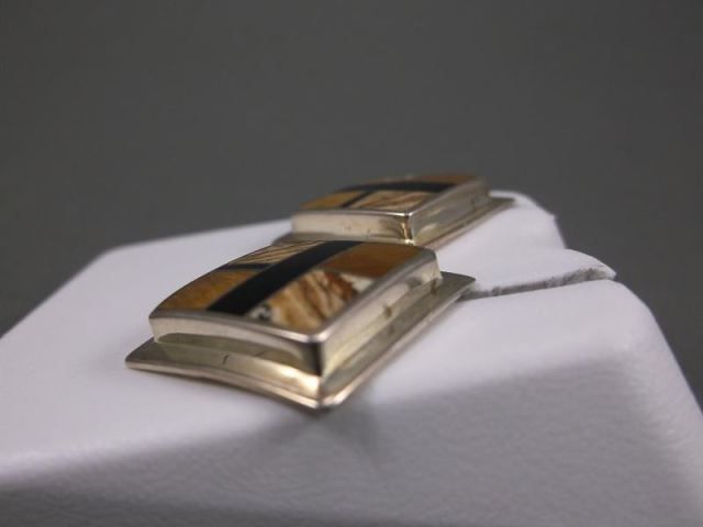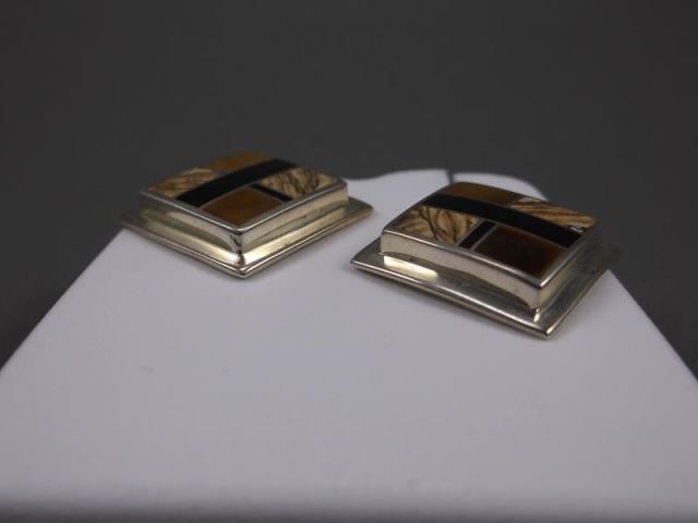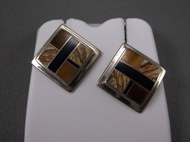 Sterling Silver Brown Stone Square Earrings Marked Calvin Begay Weight: 9.6 Grams Retail: $248.00