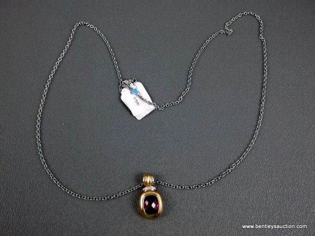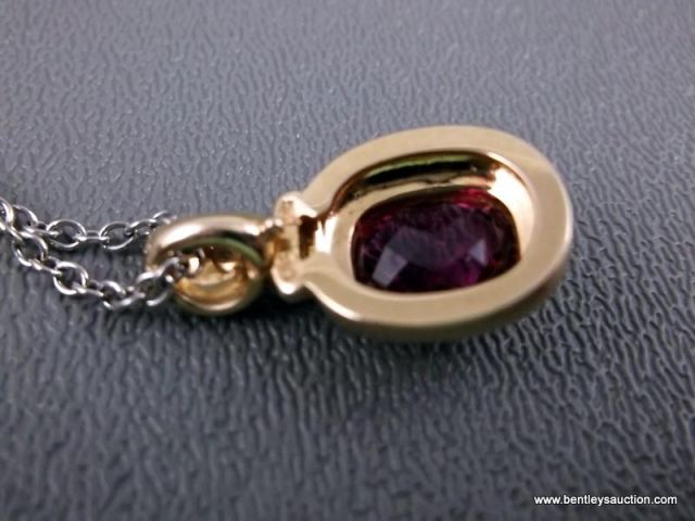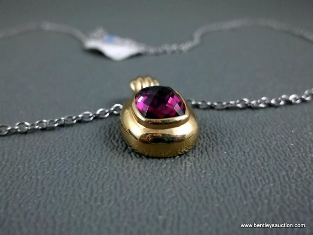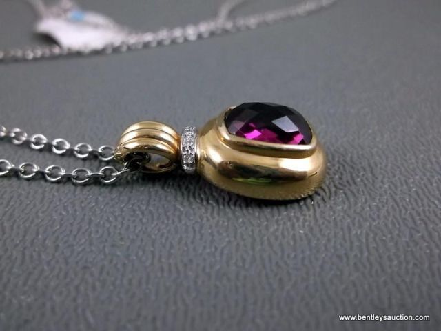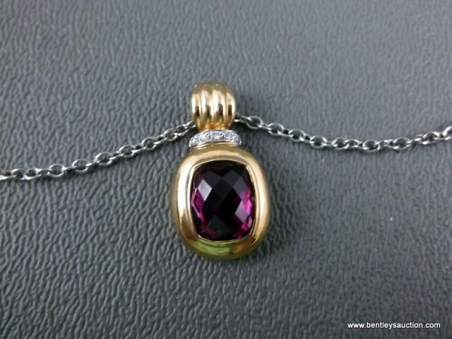 Sterling Silver Chain w/ 14 K Yellow Gold Pendant w/Pink Gem and Diamonds-Marked CS Weight: 8.8 Gram