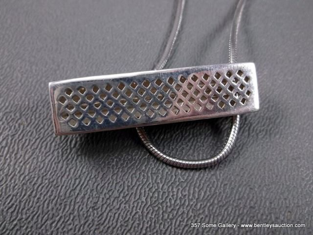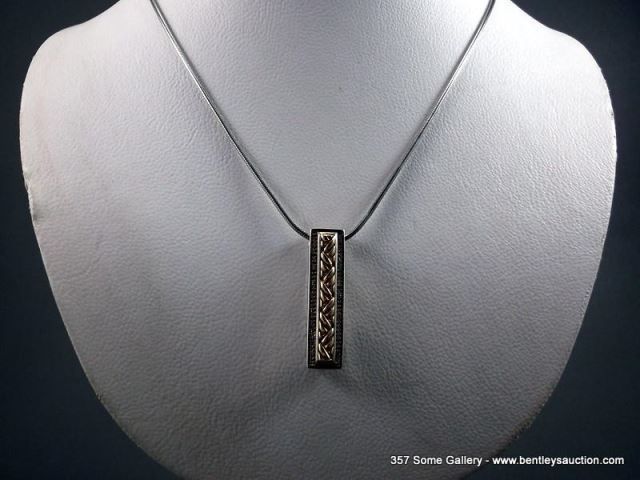 Sterling Silver Chain w/ 14K Yellow Gold on Sterling Silver Pendant w/ Diamonds-Marked De Acoma Weig