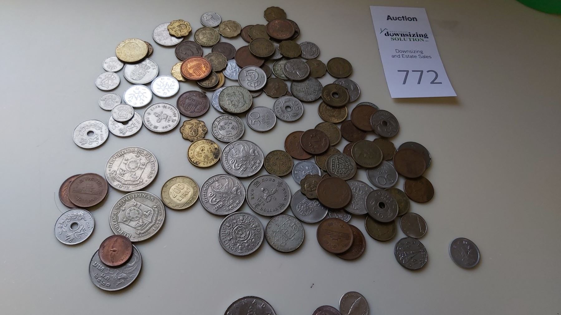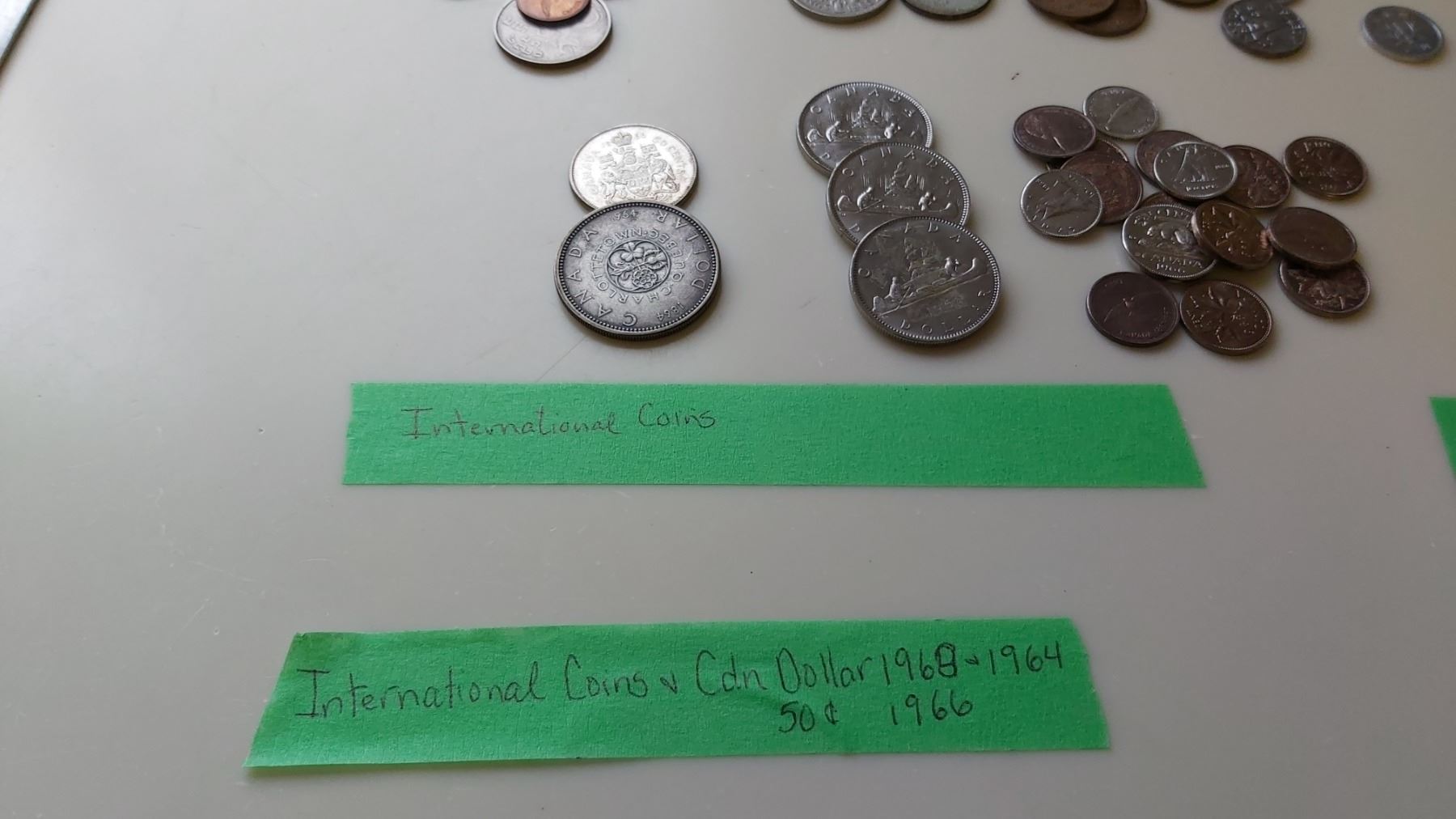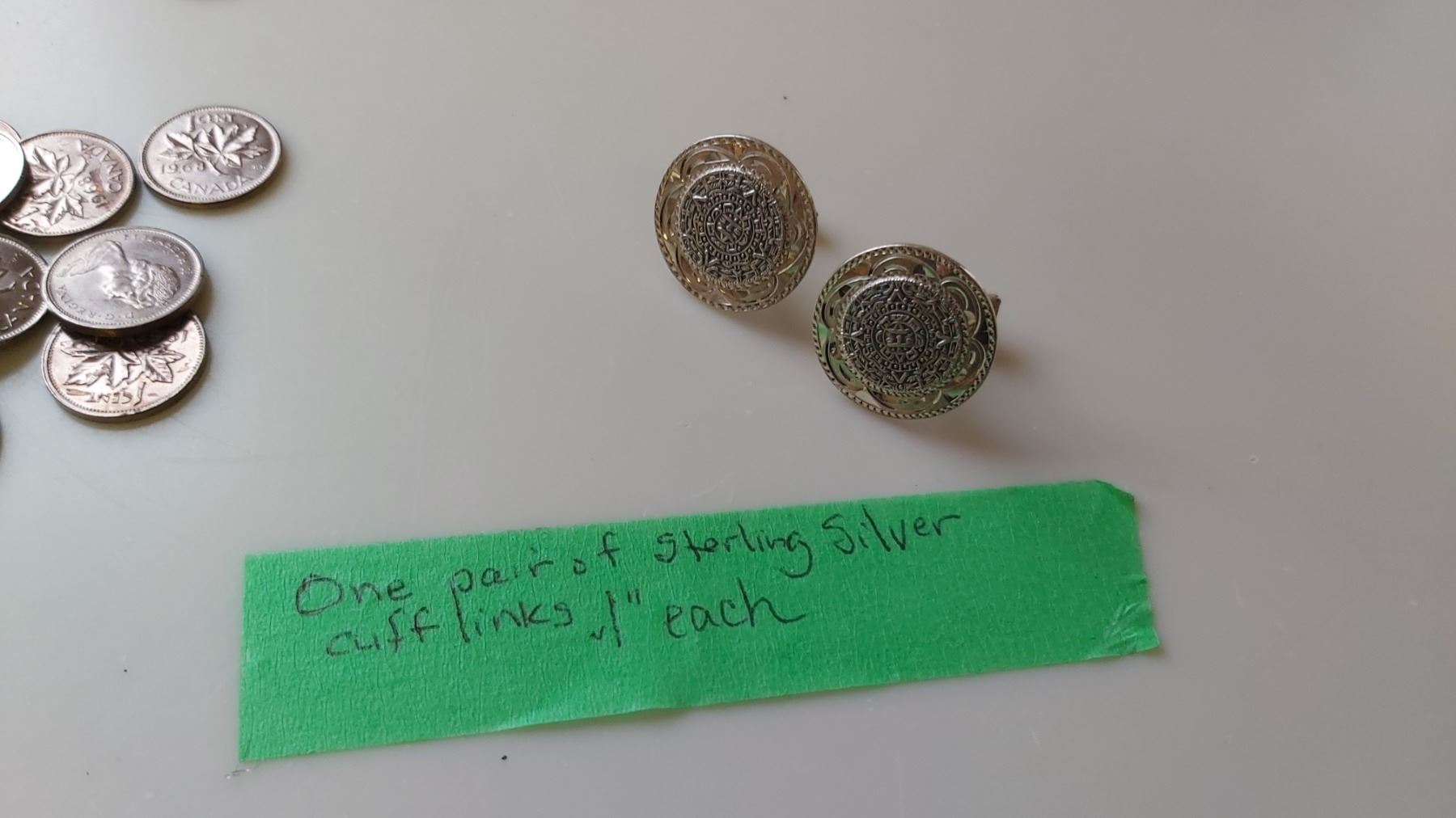 Sterling Silver cufflinks with a Mayan calendar motif plus a bag Canadian $.50, $1.00 coins dates 1966 & 1968 plus other countries coins. Pickup at 9