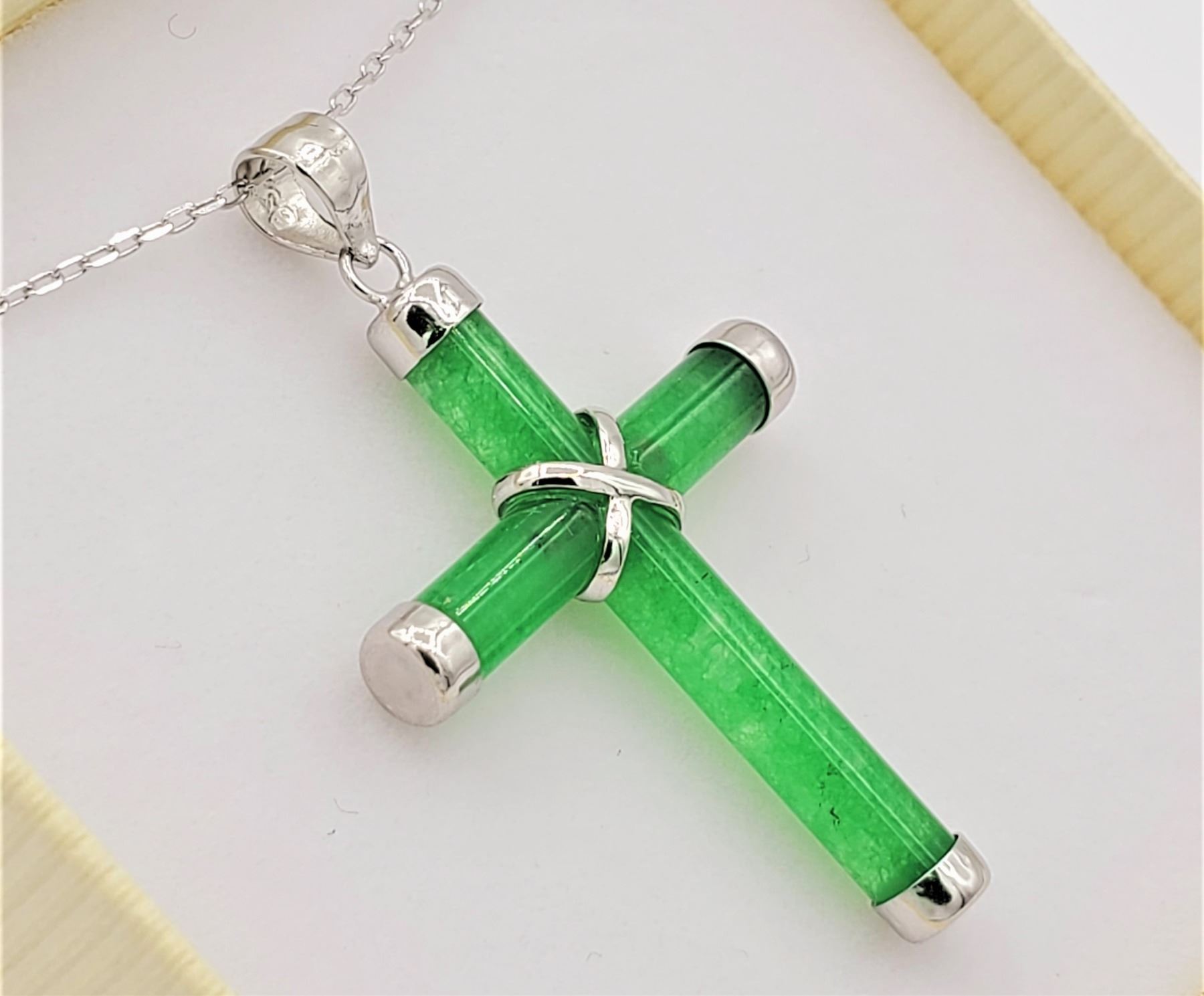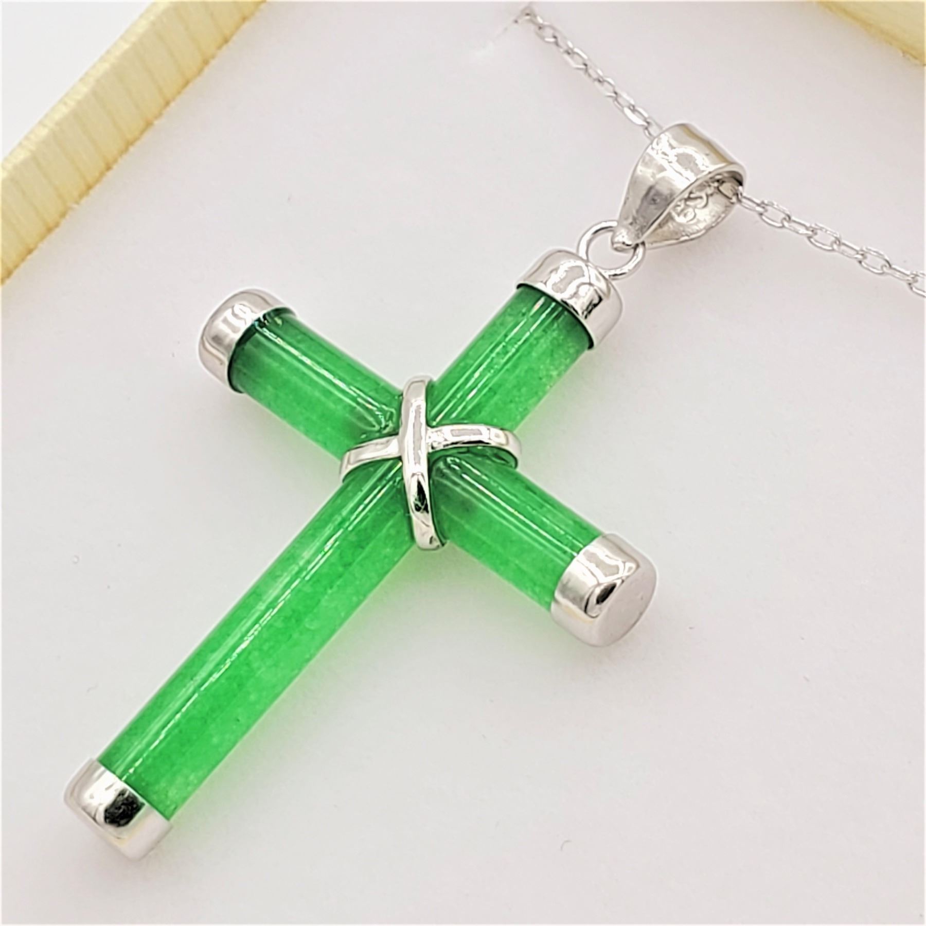 Sterling Silver genuine Jadiete Cross Pendant with Sterling chain, retail $450.00