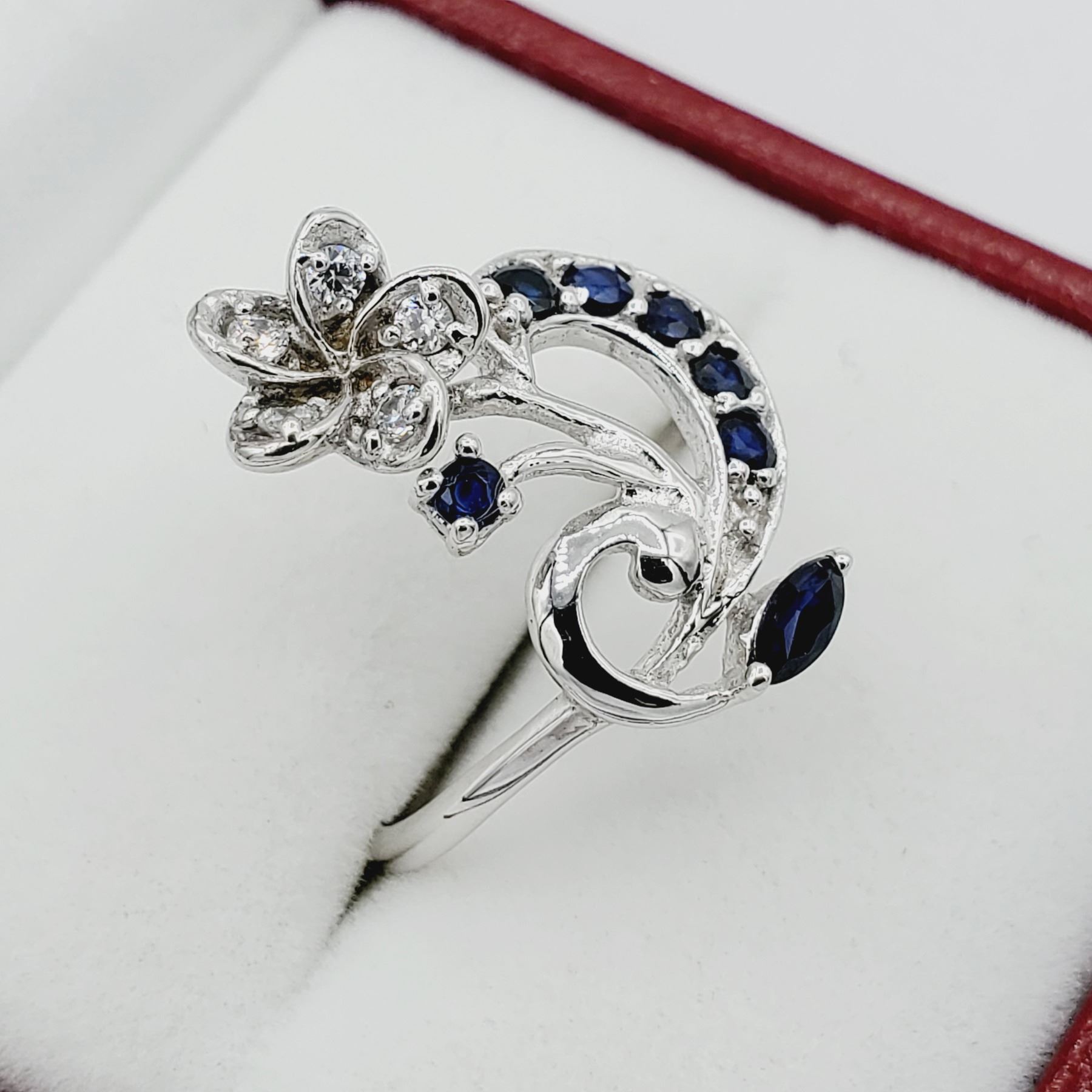 Sterling Silver genuine Sapphire & CZ Ring, 7 Sapphire (0.37cts), W/A $715.00, Size 6.5, Sapphire is the birthstone for September.