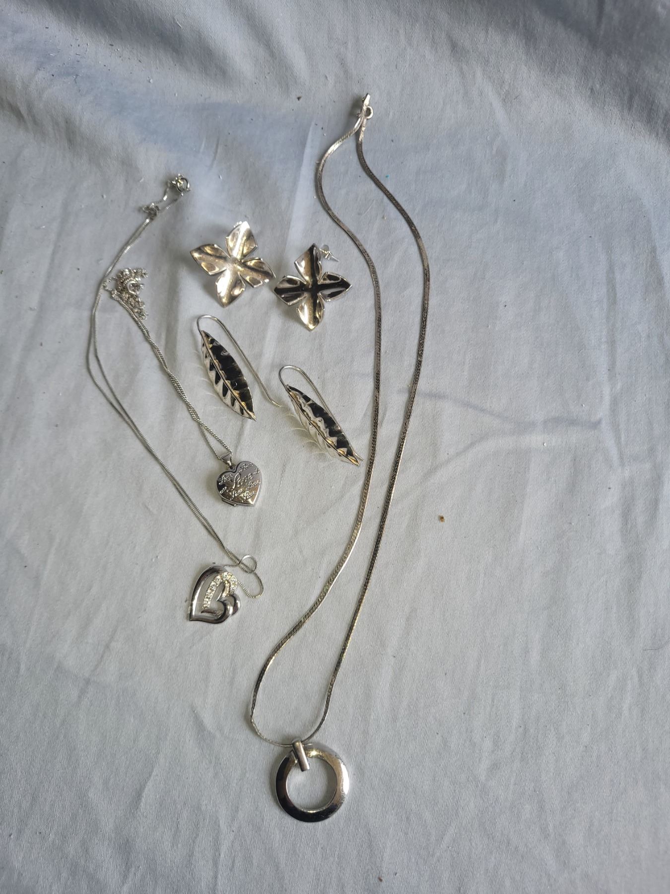 2 Pairs of sterling earrings and 3 sterling necklaces. Pickup at 9 am