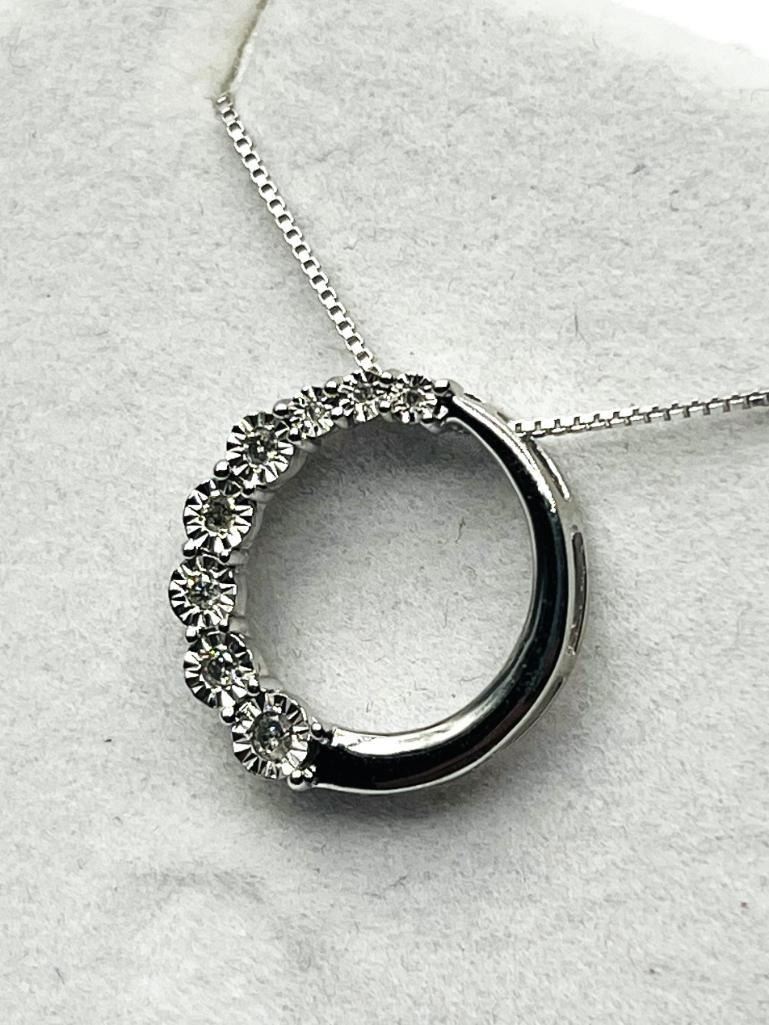 Sterling Silver Natural Diamond (0.11ct) Circle Pendant with Sterling Silver Chain, W/A $280.00.