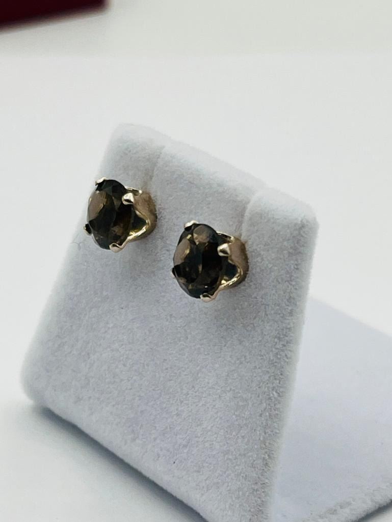 Sterling Silver Natural Smokey Quartz Round Shape Earrings, Retail $250.00.