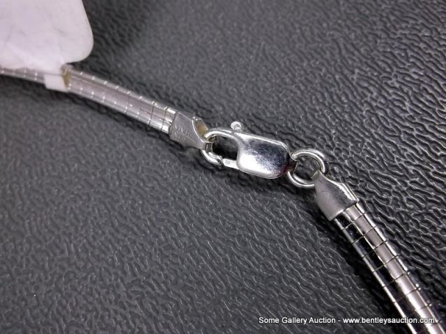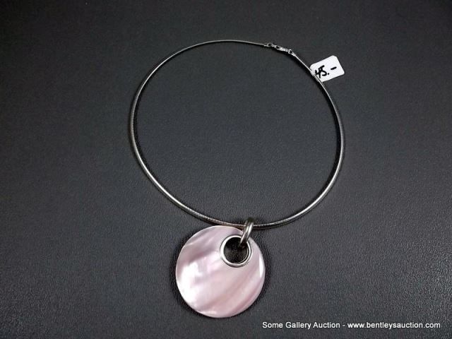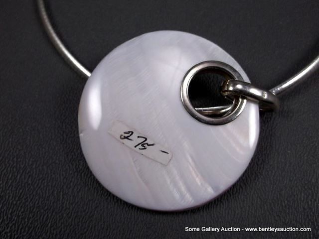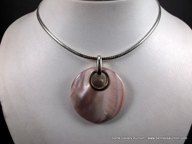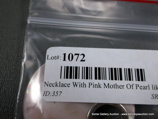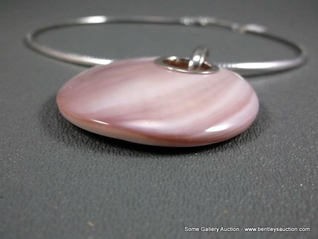 Sterling Silver Necklace W/ Pink Mother Of Pearl Like Stone w/ Heavy Silver Like Chain Weight: 43 Gr