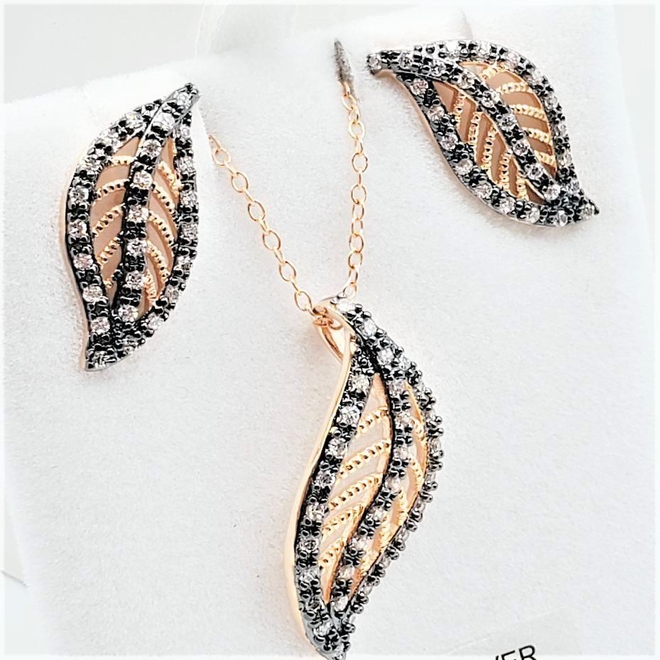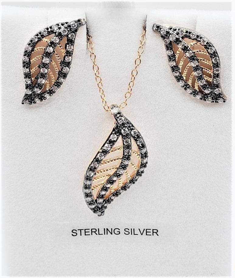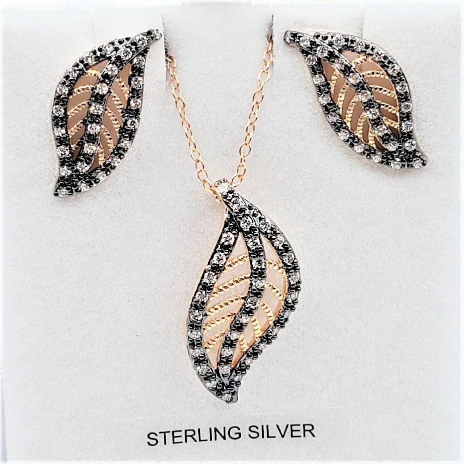 Sterling Silver Rose Rhodium plated CZ Earrings & Pendant with chain, With Appraisal of $760.00