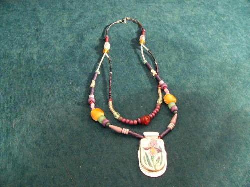 Sterling Silver & Scrimshawed Mastodon Ivory Necklace 21" (T Lot)