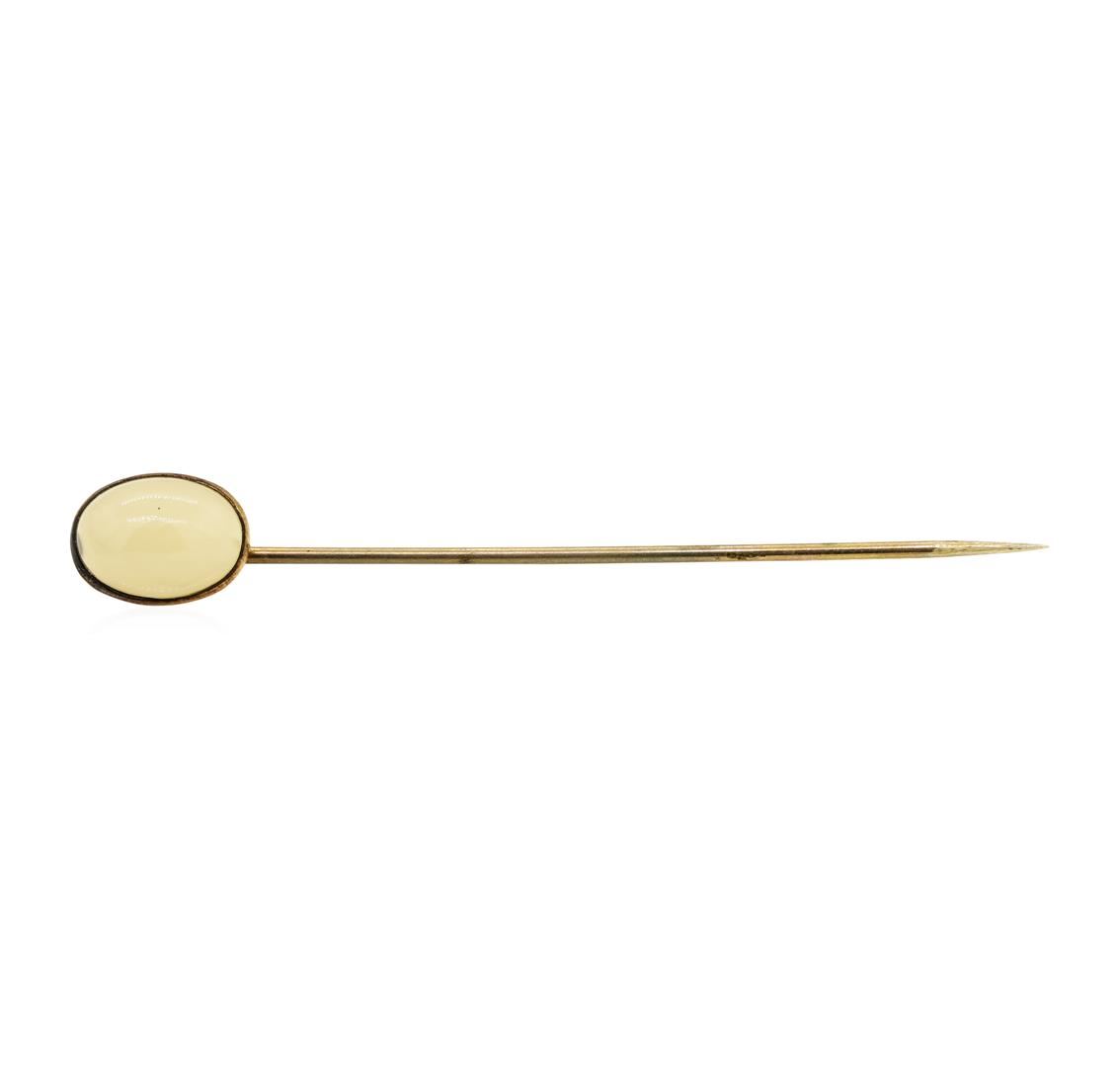 One stick pin featuring: silver weighing 1.2 grams featuring one oval cabochon cut white crystal.