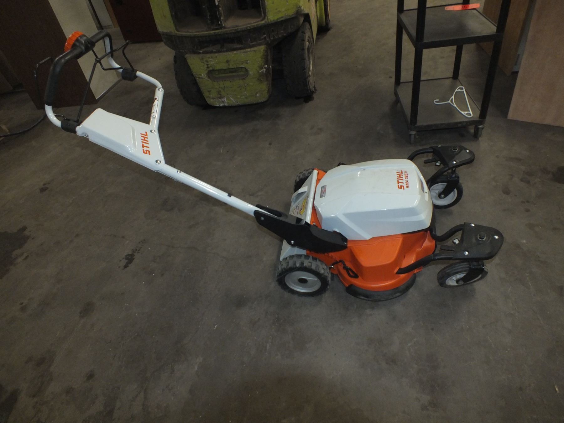 Stihl RMA 765V Lawn Mower, missing battery and charger, also has a broken wheel....used