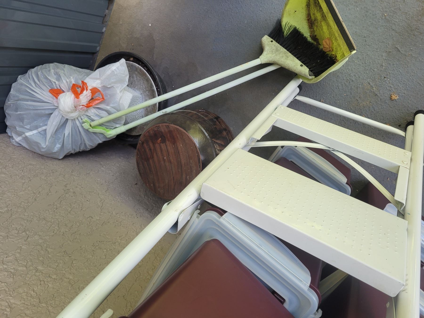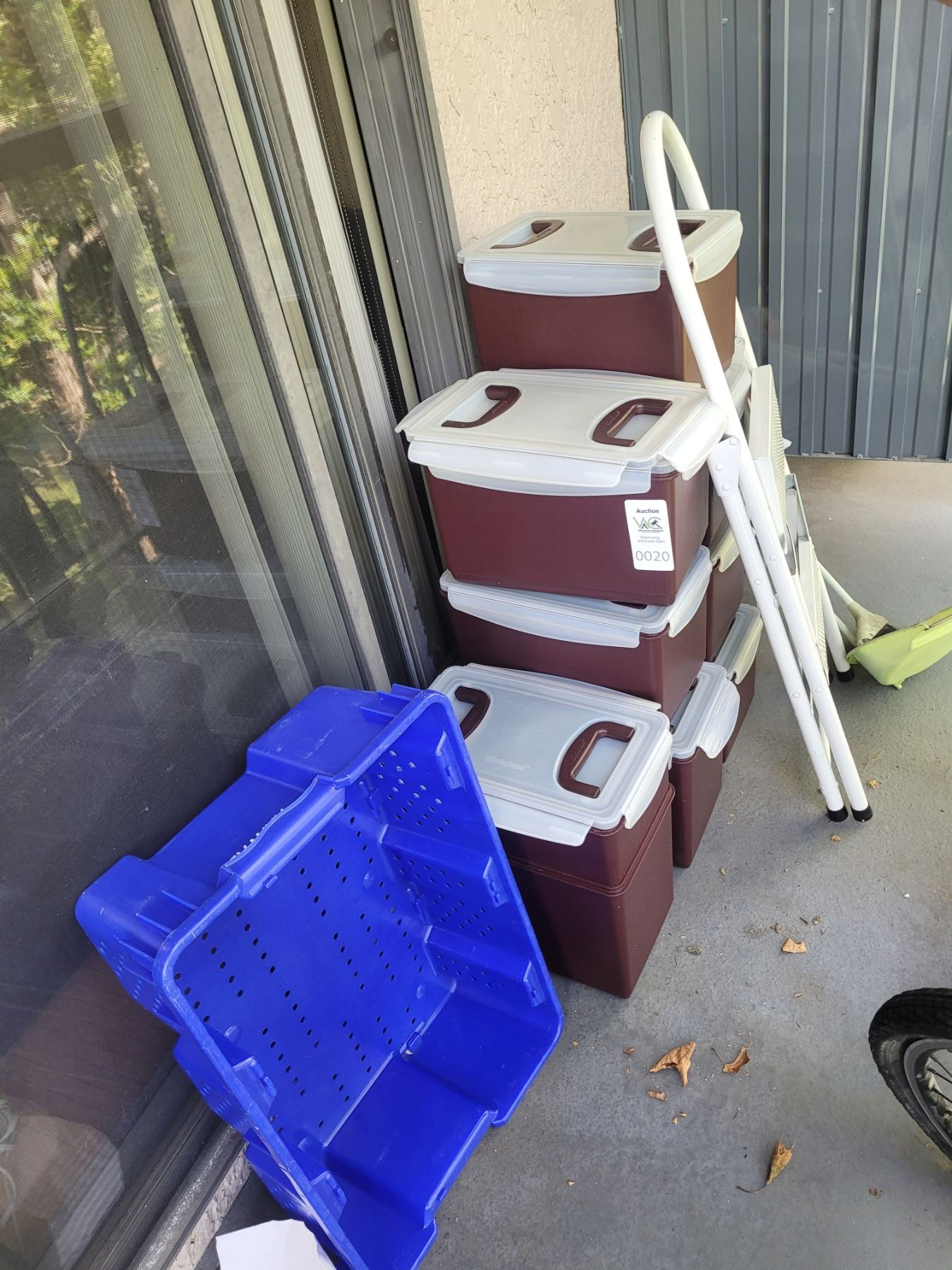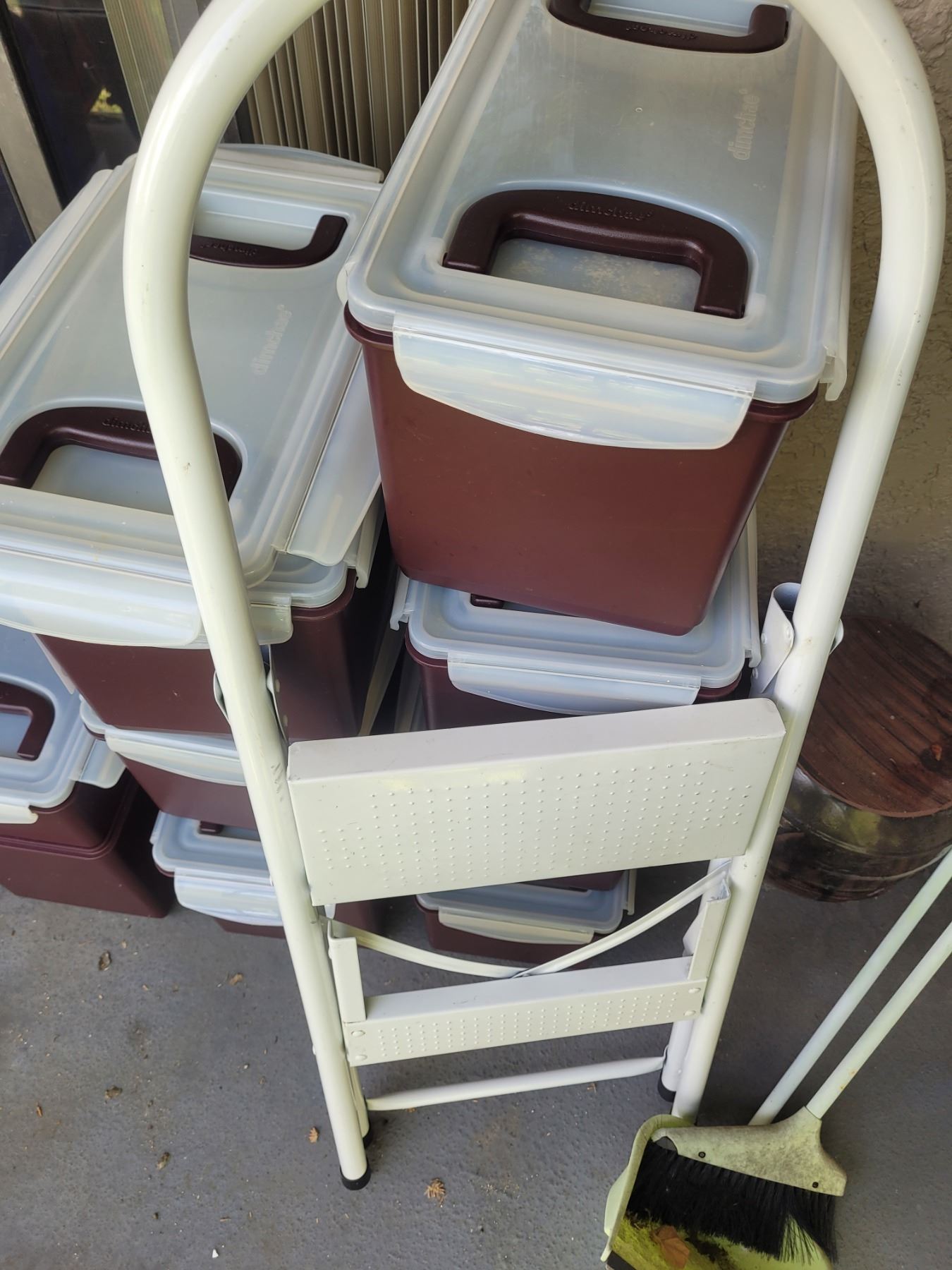 Dimchae brand storage containers, step ladder. Pick up 9 am