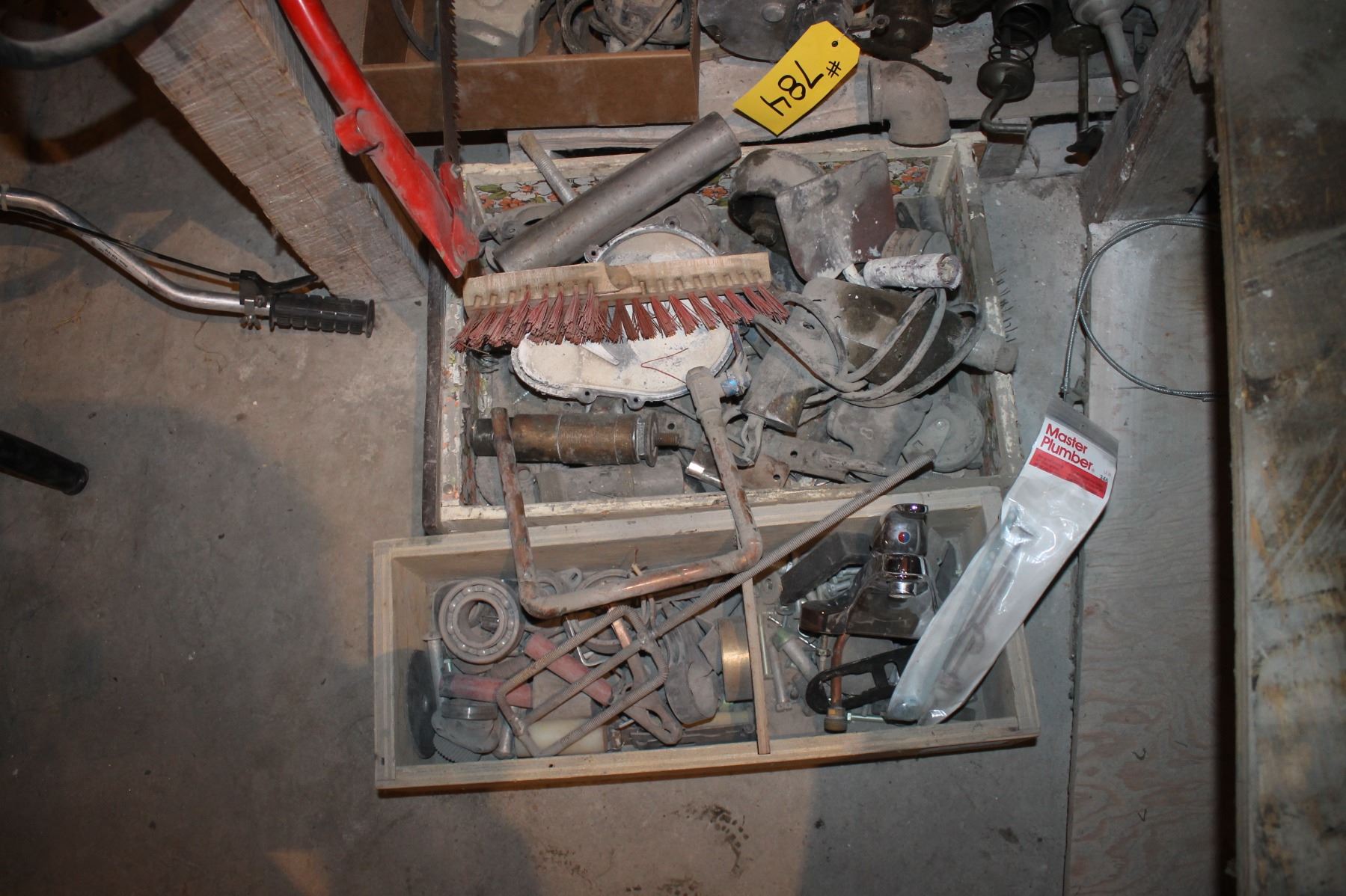 Sump pump, grease guns, saw, spare tire, empty Hilti case and misc. parts