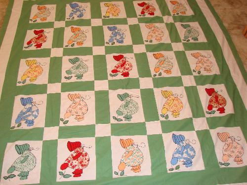 Sunbonnet Sue appliqued quilt top, apprx.80"x74"