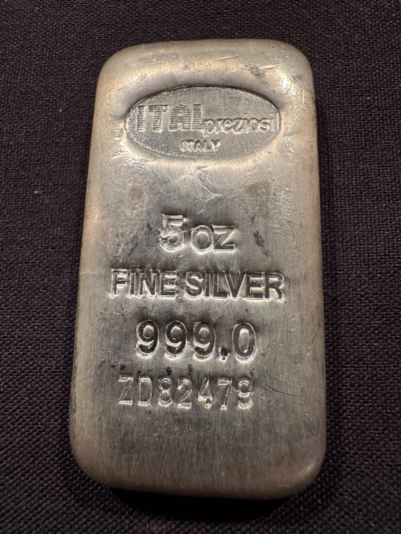 Super Rare 5 Troy Ounce .999 Fine Silver Bar - Incredible Piece