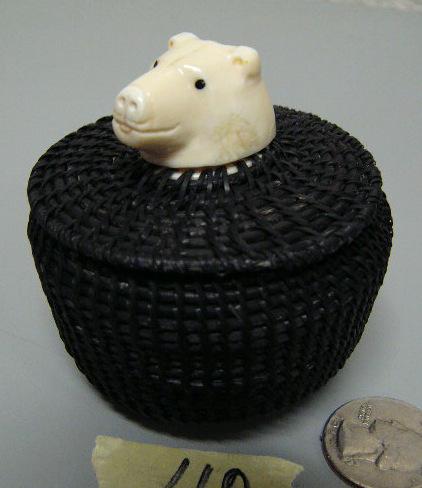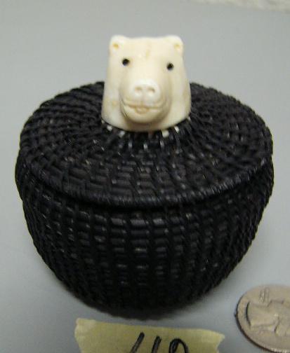 Superior quality 3" baleen basket by Hayes- very tight- bears head as finial