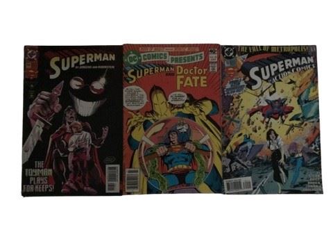 Take flight with this exciting bundle of Superman comics spanning the Bronze Age through the 1990s—a mix of classic storytelling, crossover events, and iconic creative teams. Featuring appearances by Doctor Fate and Waverider, plus key issues from the Reign of the Supermen saga, this lot is ideal for collectors, fans of DC’s flagship hero, or anyone looking to dive into vintage Superman lore.