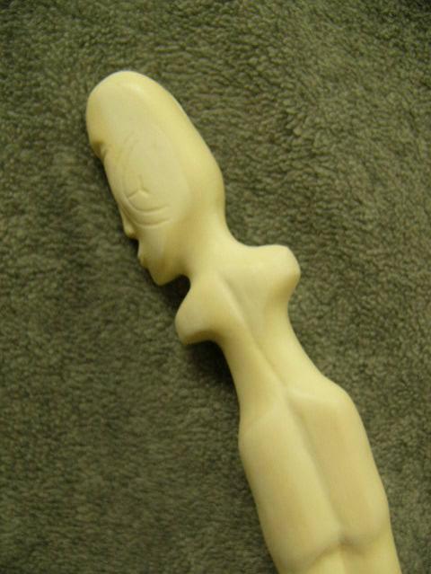 Susie Silook carved ivory female figure mounted on bone- approx. 13-1/2" tall