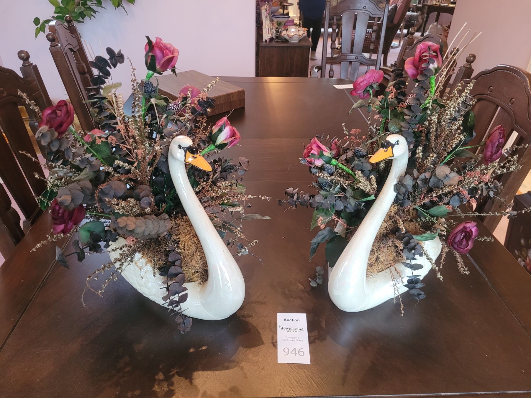 2 x ceramic swan containers for dried flower arrangements. Pickup at 9 am