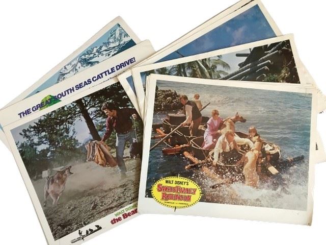 A collection of 7 Walt Disney‘s Swiss Family Robinson movie publicity pictures, 2 from The Bear and I, and 1 from The Castaway Cowboy. All in worn condition.(11”x14”)