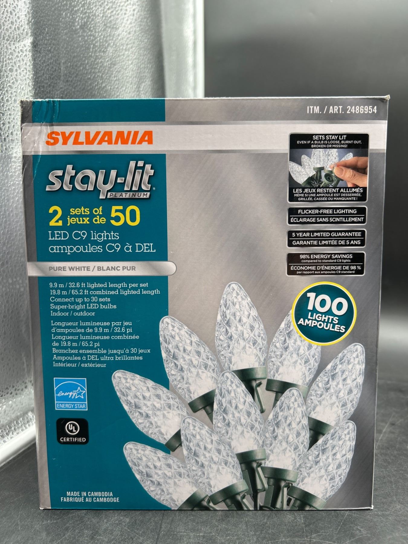 Sylvania Stay-Lit Platinum LED C9 Lights, 2 Sets of 50, 100 Total Lights