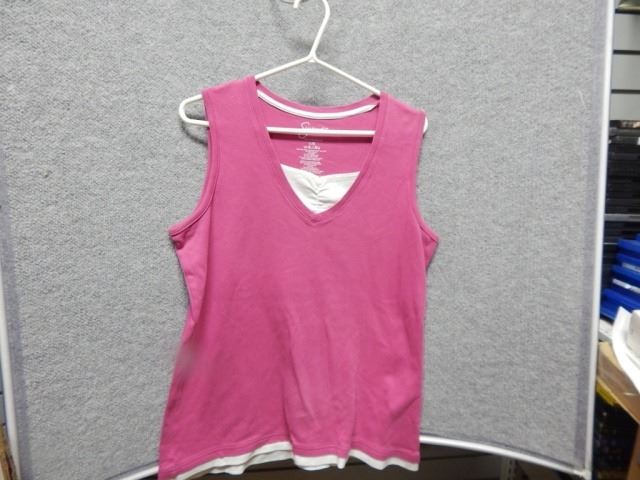 T-SHIRT - LADIES - SIGNATURES - PINK - LARGE - WHITE V-NECK