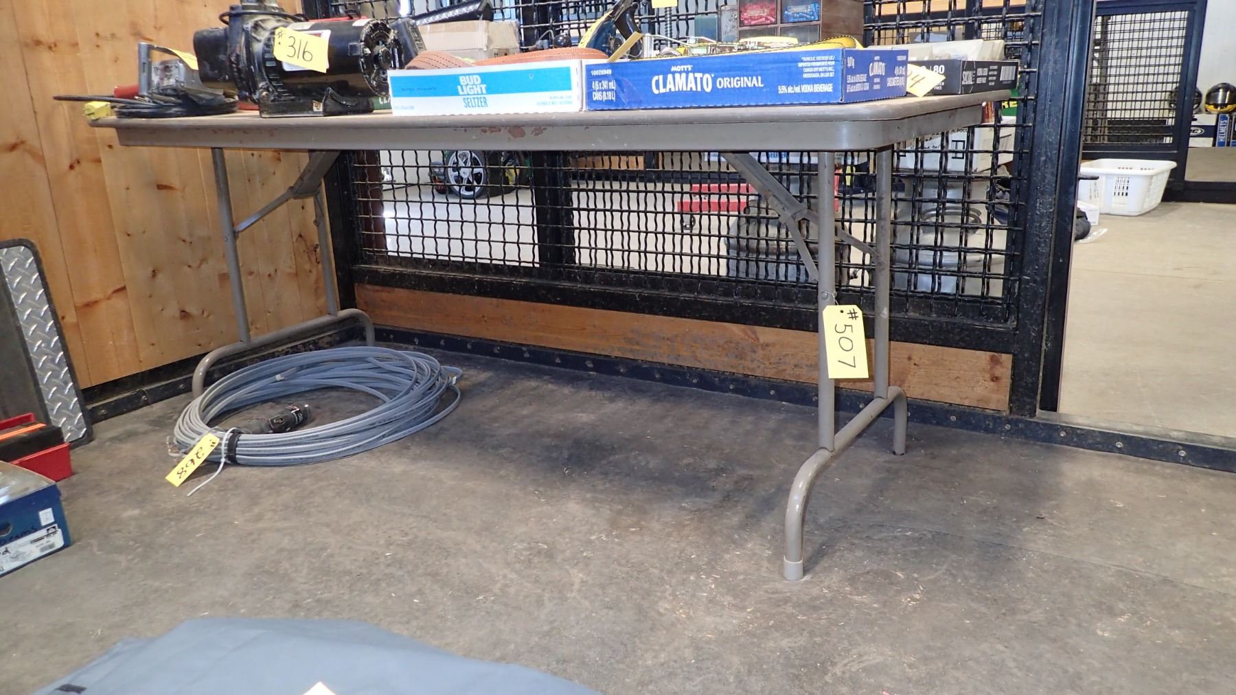 TABLE WITH FOLDING LEGS (APPROX 30” X 72”)