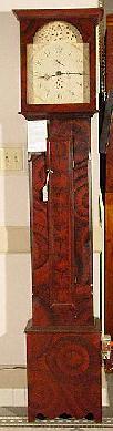 , having painted/grained finish, wooden works, height 80", New England, circa 1810-1835.